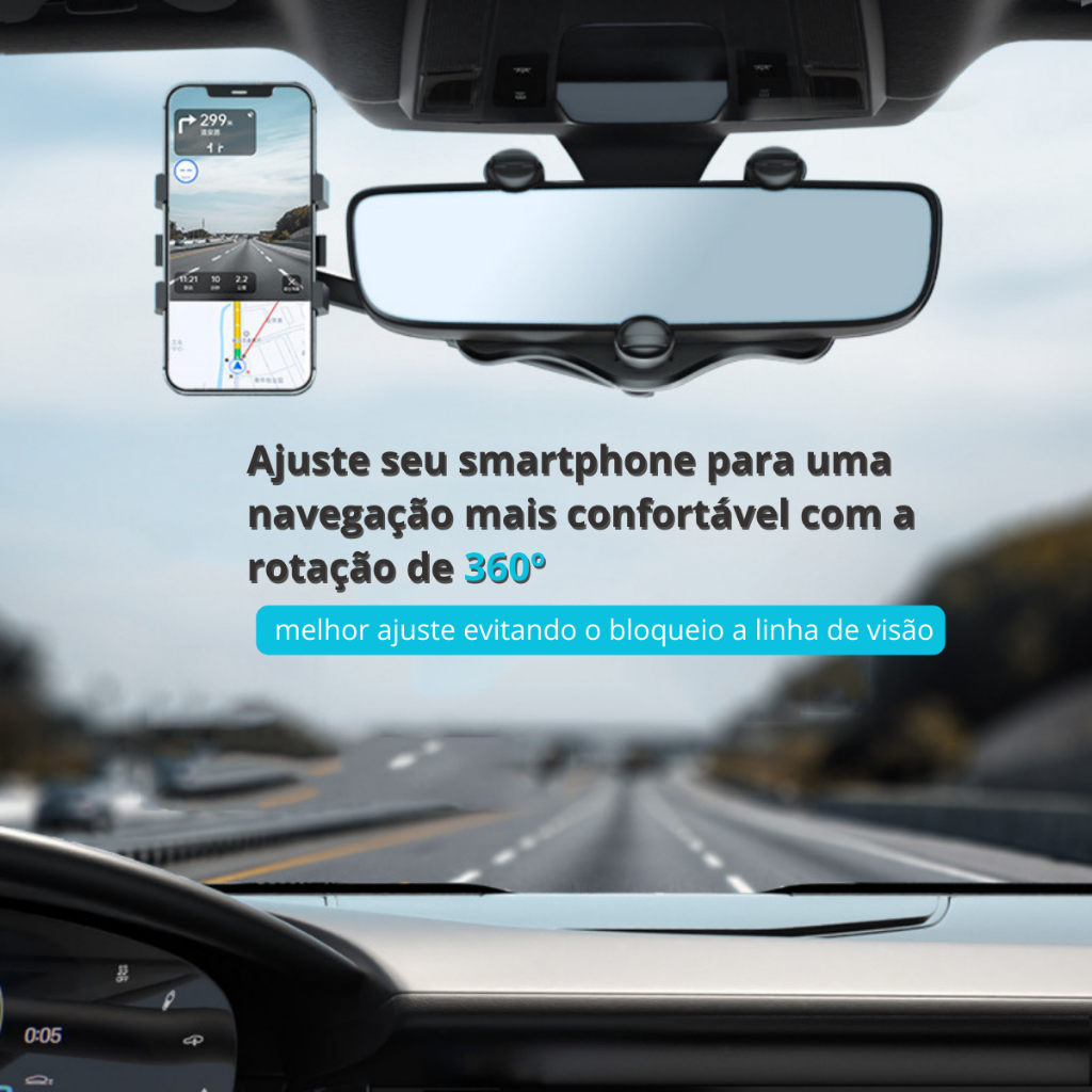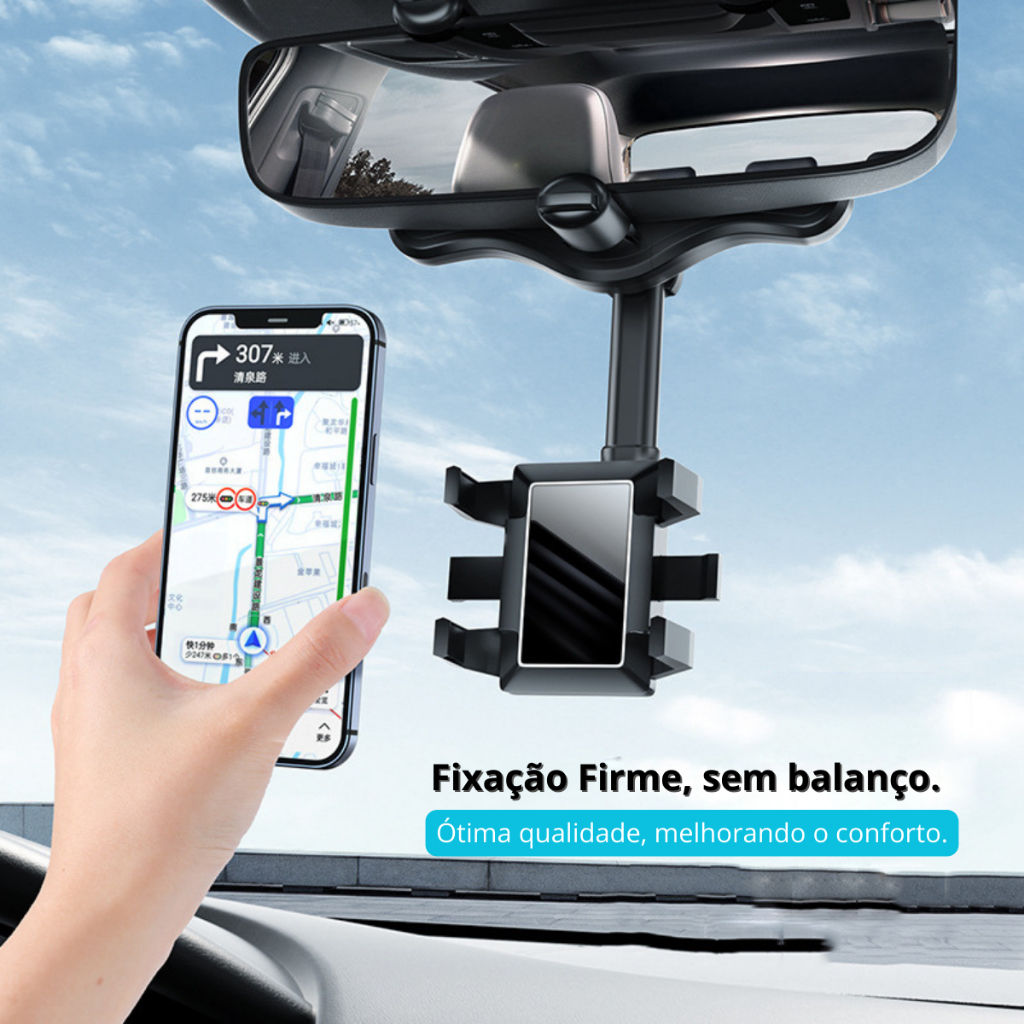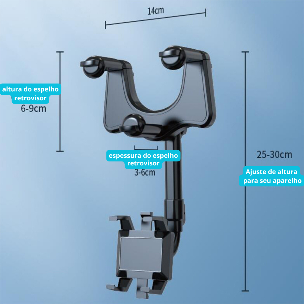 Suporte Celular Retrovisor Carro 360° Ajustável Universal GPS Veicular Fixação Espelho Retrovisor
