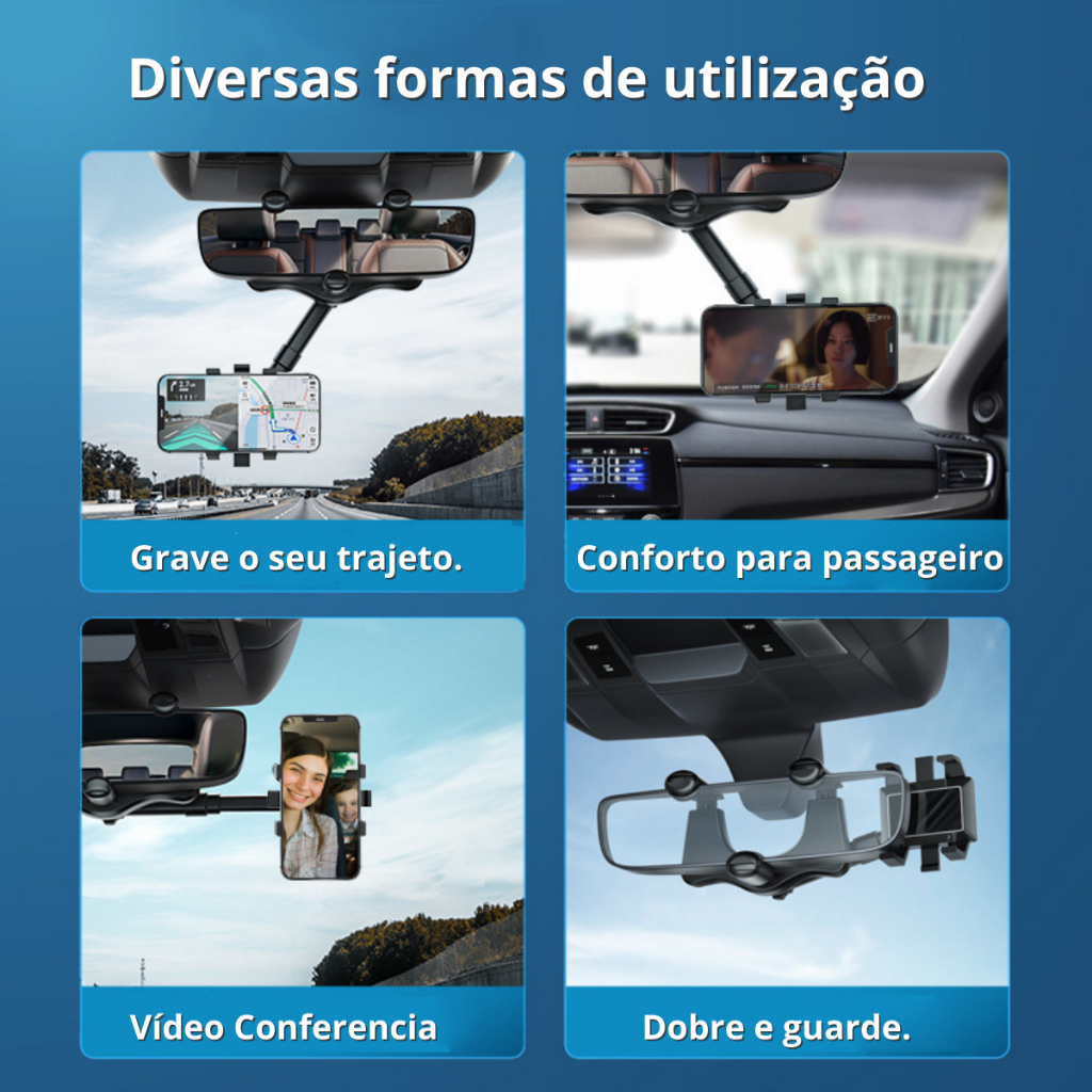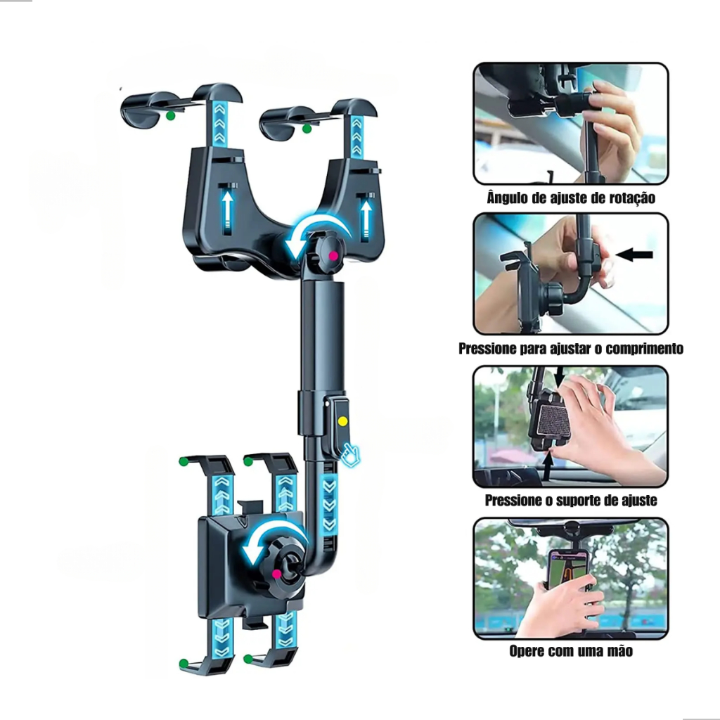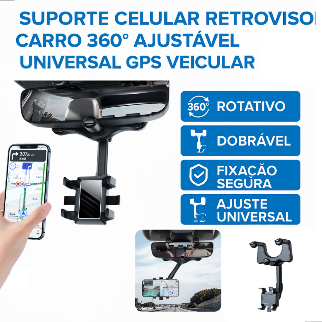 Suporte Celular Retrovisor Carro 360° Ajustável Universal GPS Veicular Fixação Espelho Retrovisor