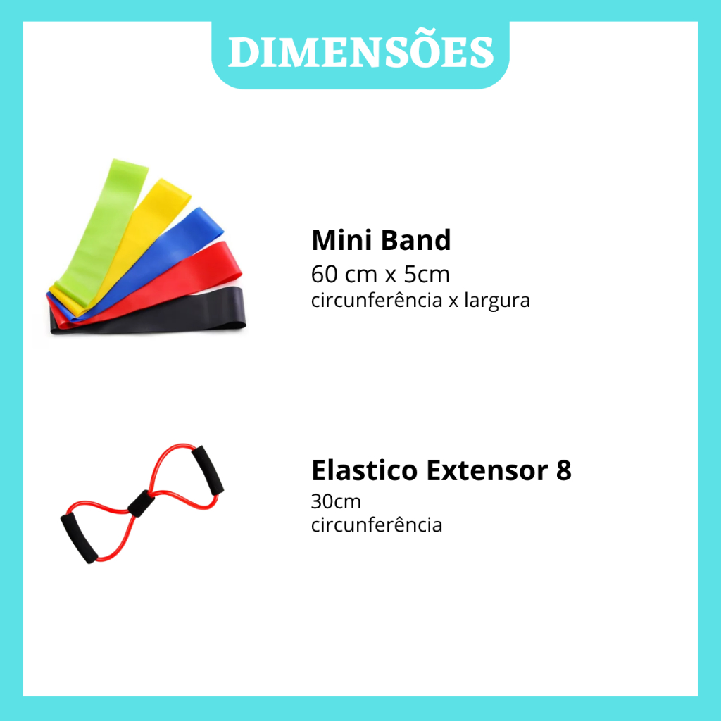 Kit Mini Band 5 Faixa Elastica, Elástico 8 Tensão Extensor Exercício Físico Funcional e Fisioterapia