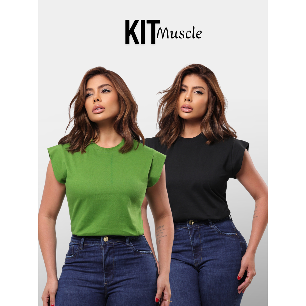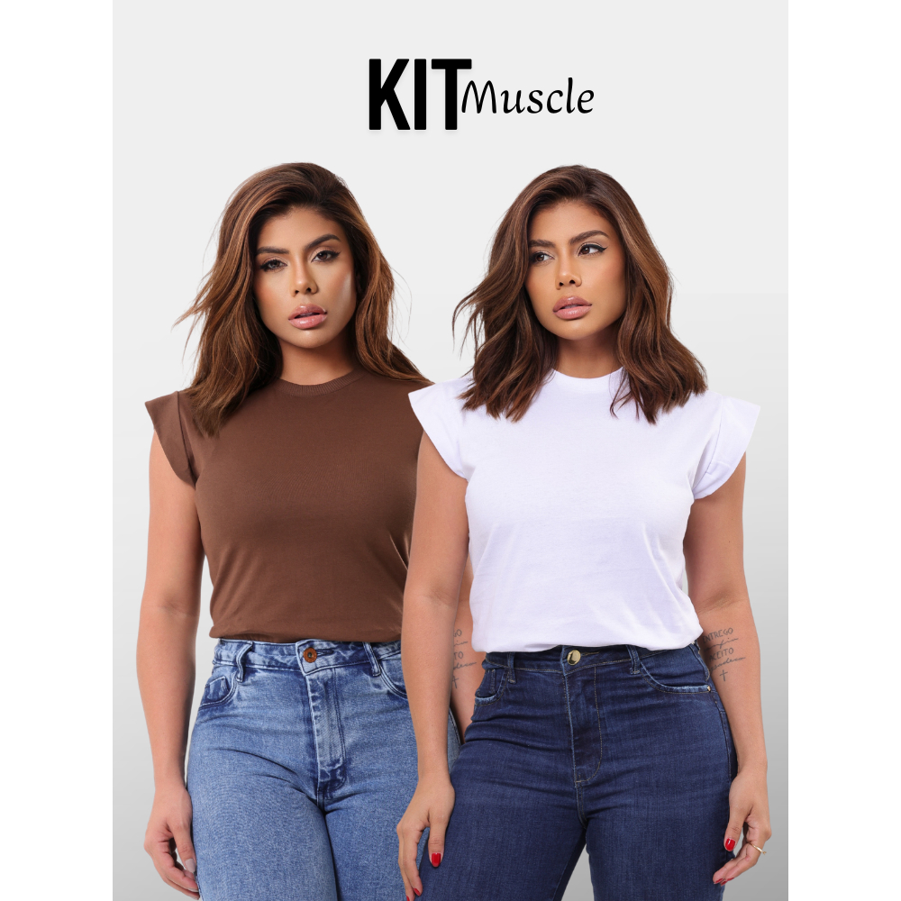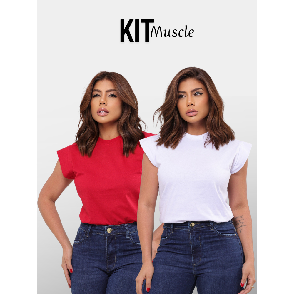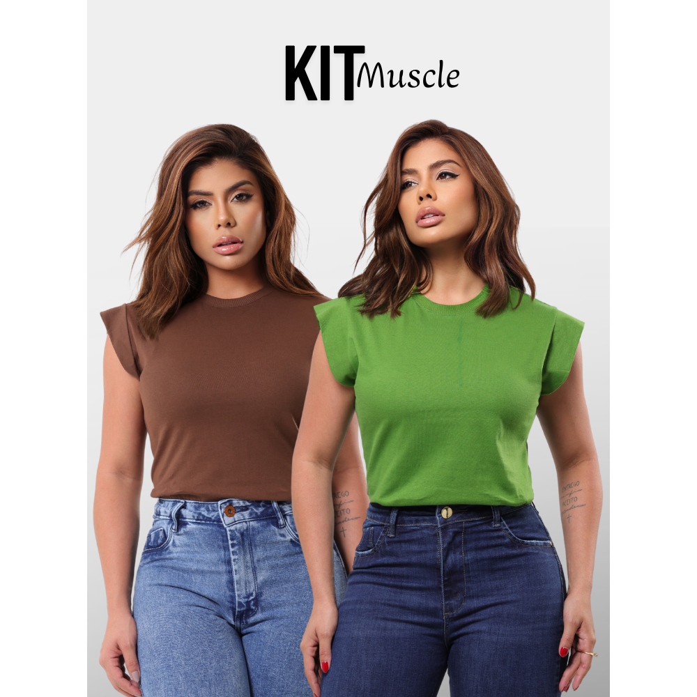 Kit 2 Blusas Muscle Tee Feminina Camiseta Básica Lisa Moderna Elegante Casual Algodão