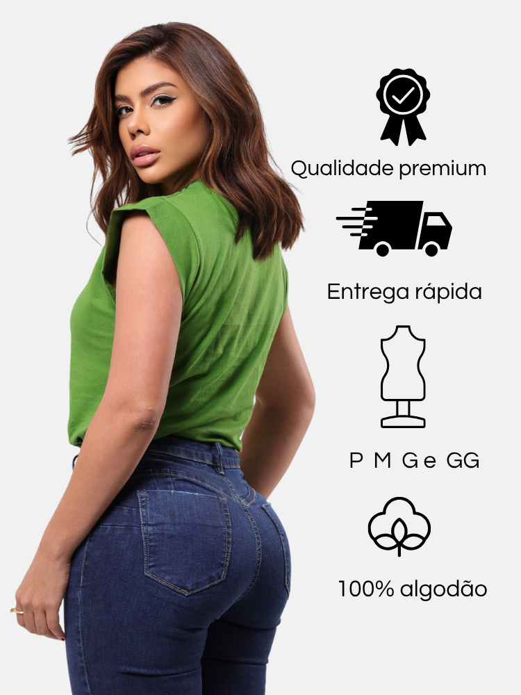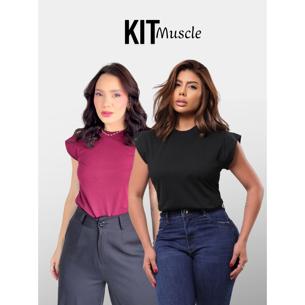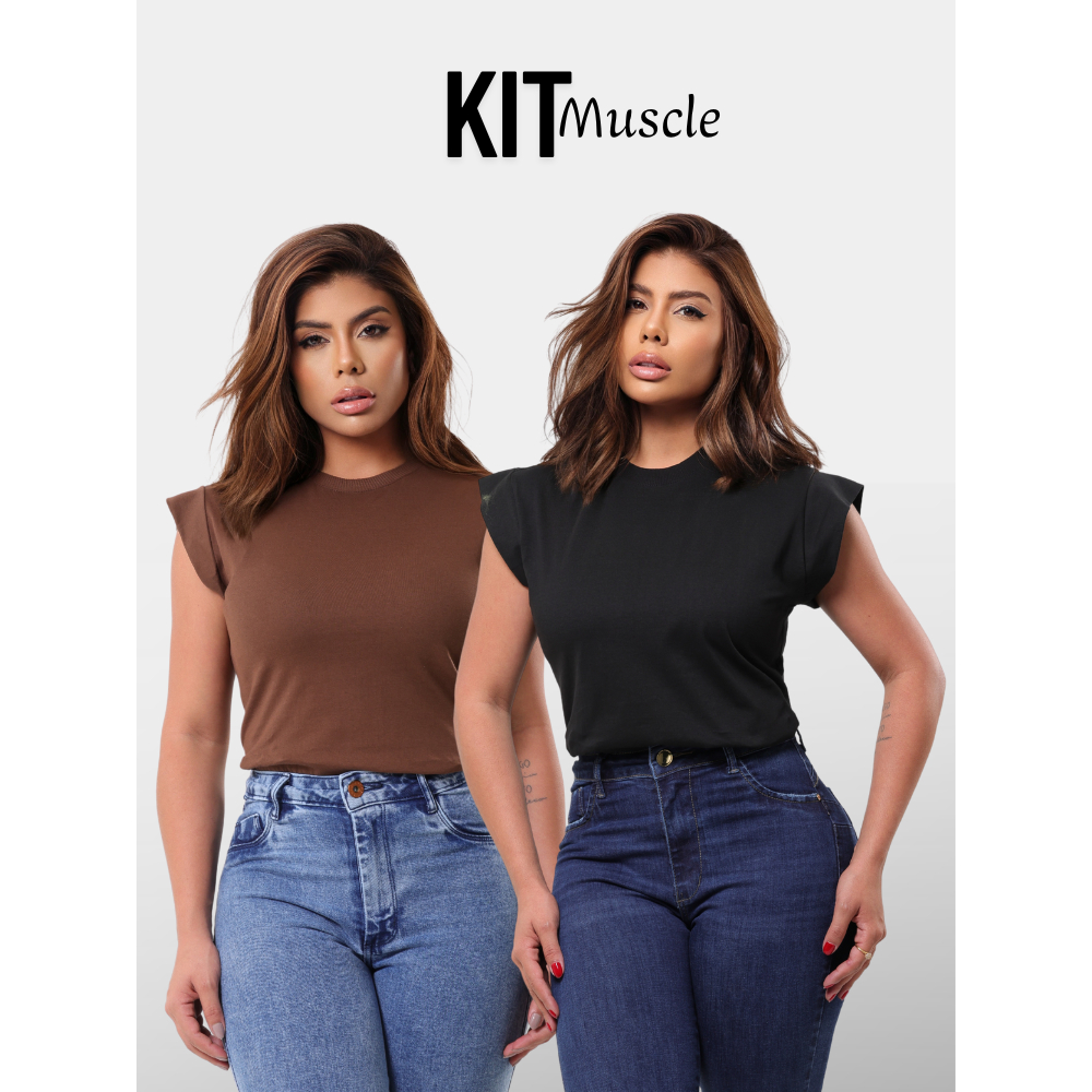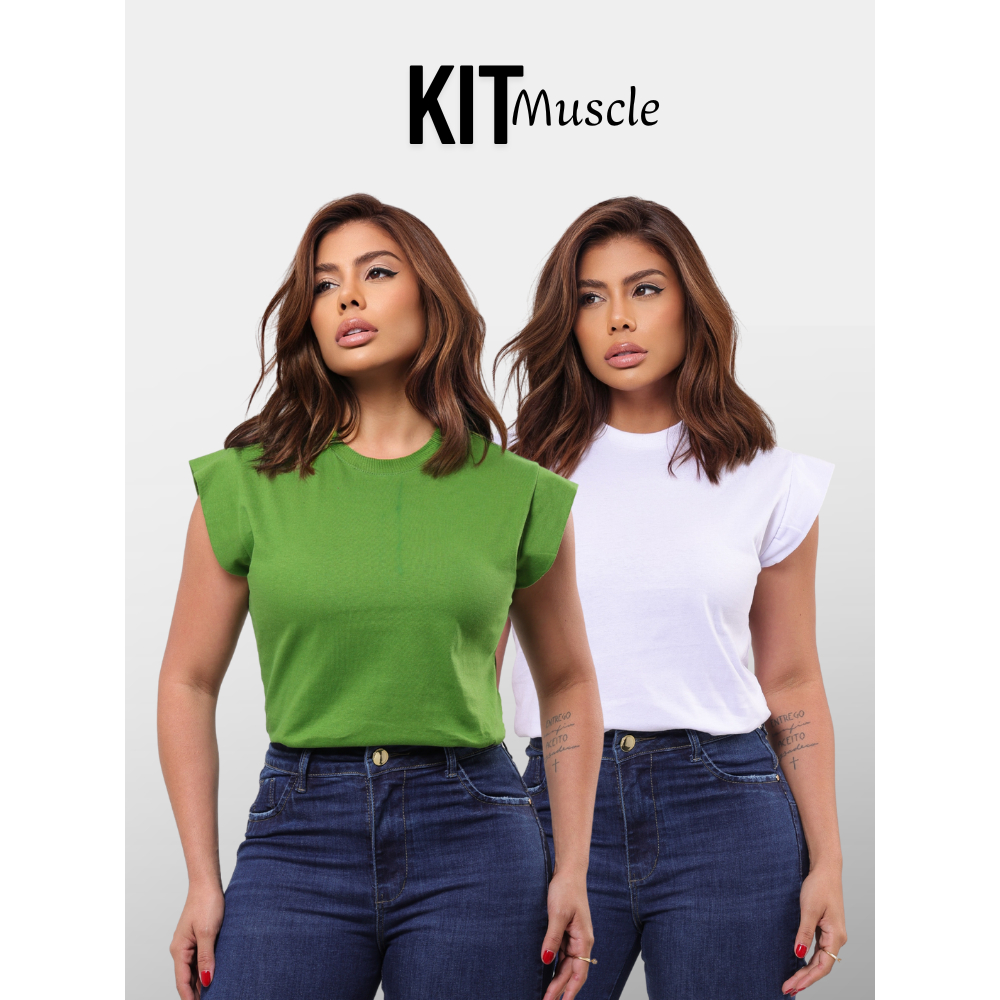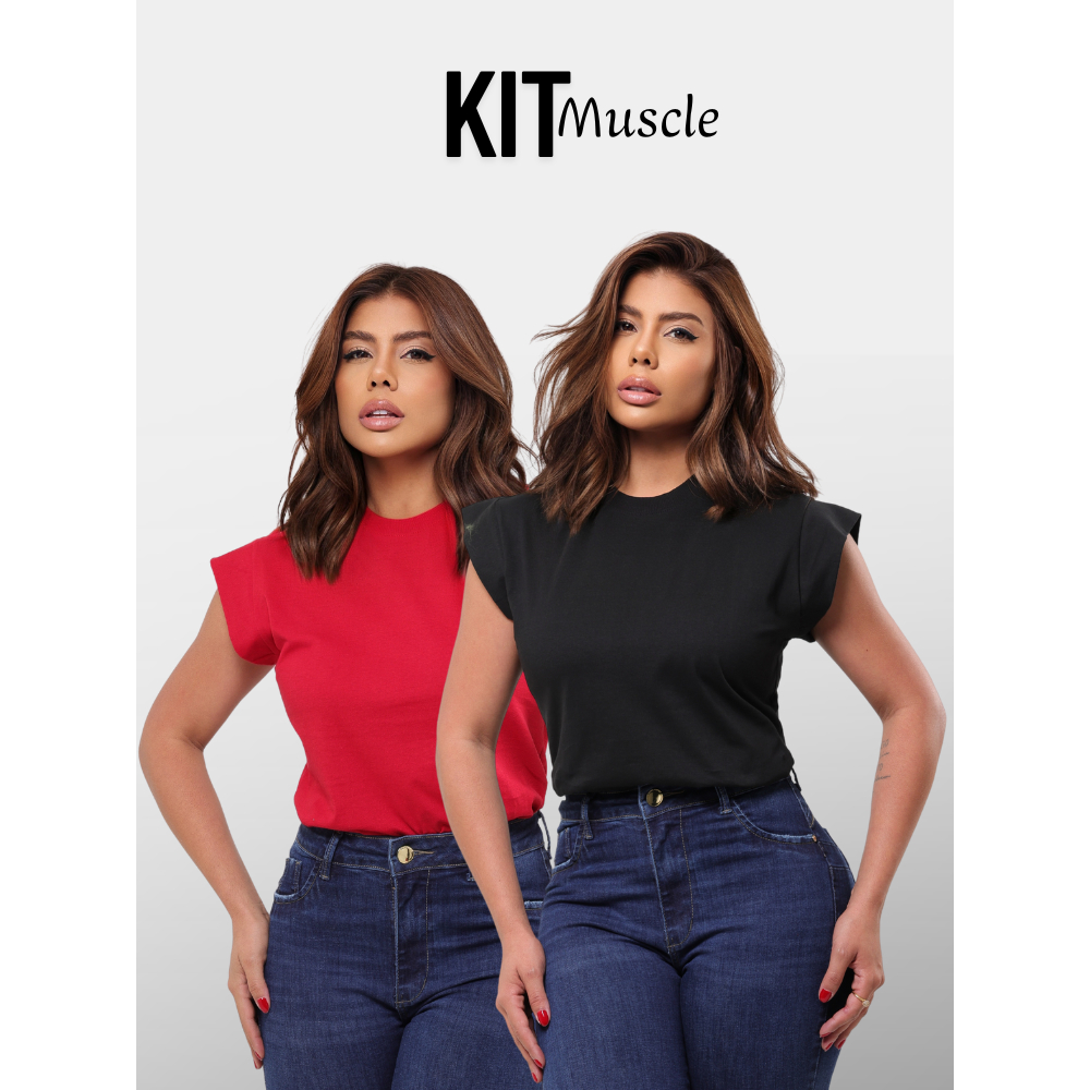 Kit 2 Blusas Muscle Tee Feminina Camiseta Básica Lisa Moderna Elegante Casual Algodão