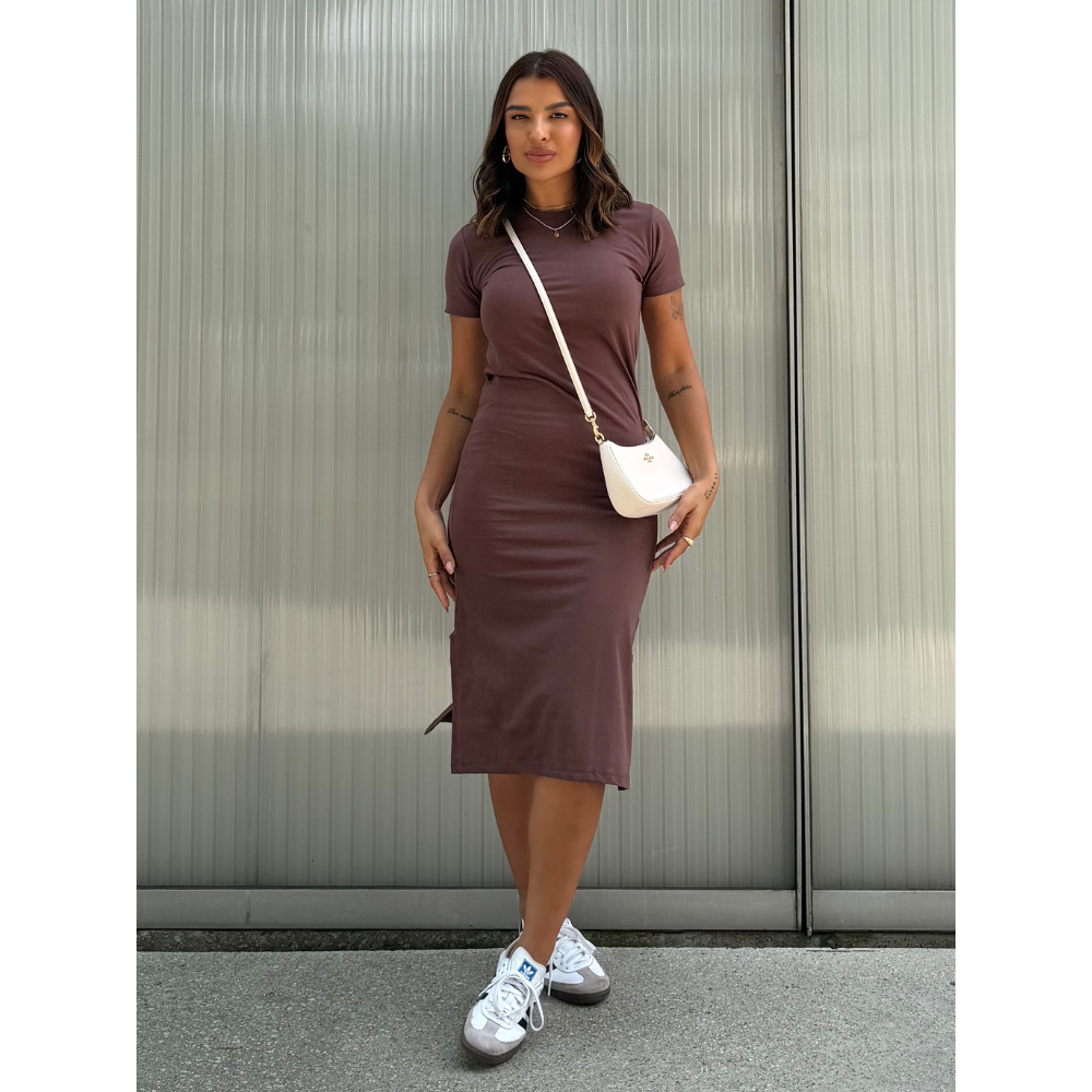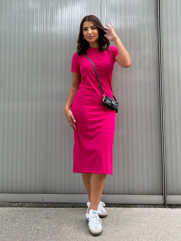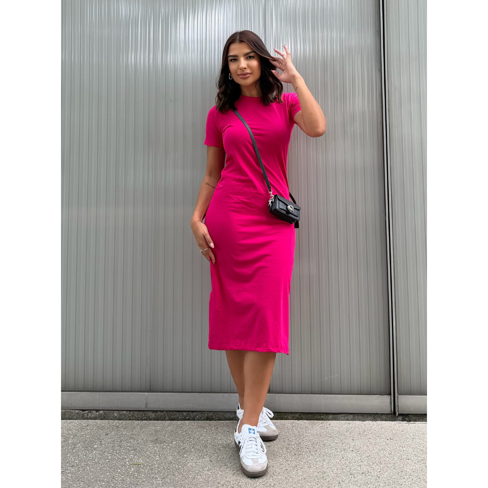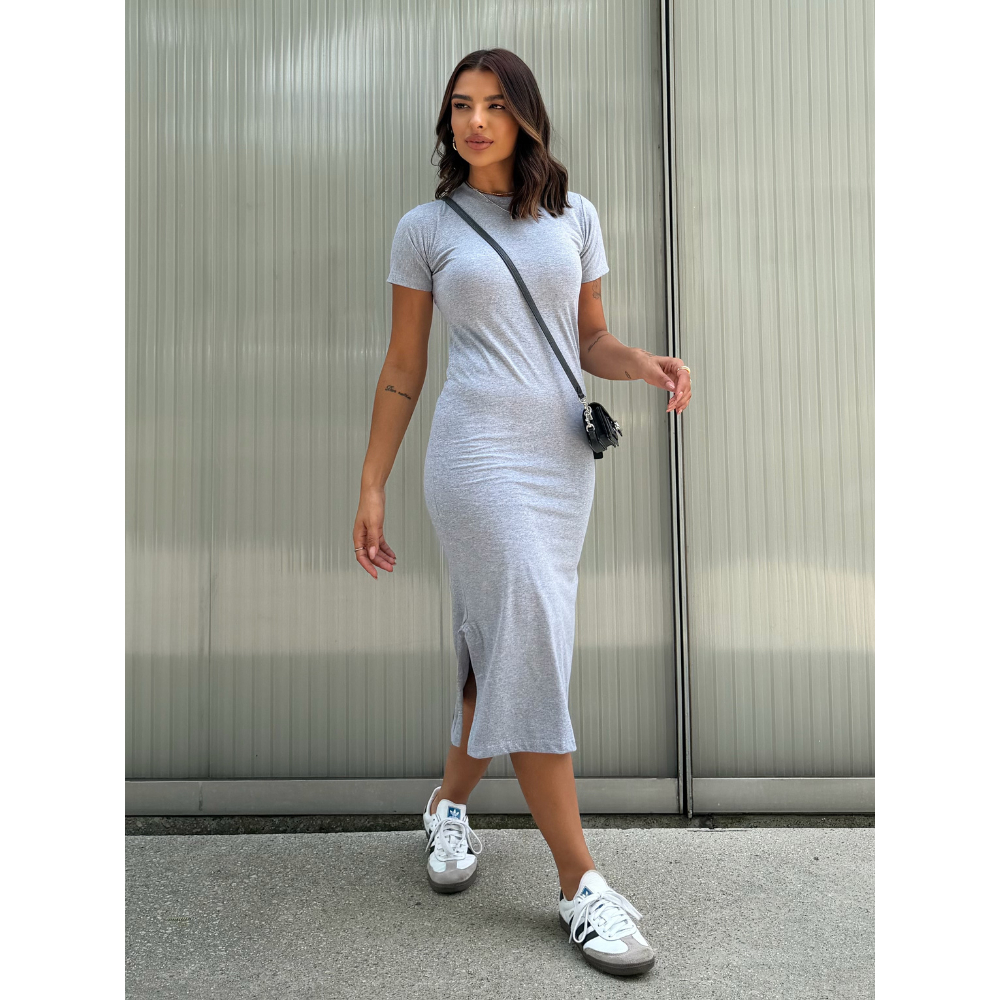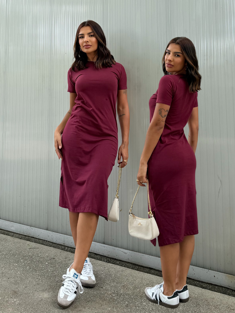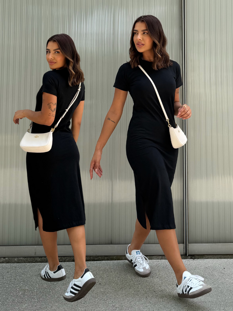 Vestidos Midi Moda Verão Manga Curta Fenda Lateral Algodão Soltinho Confortável
