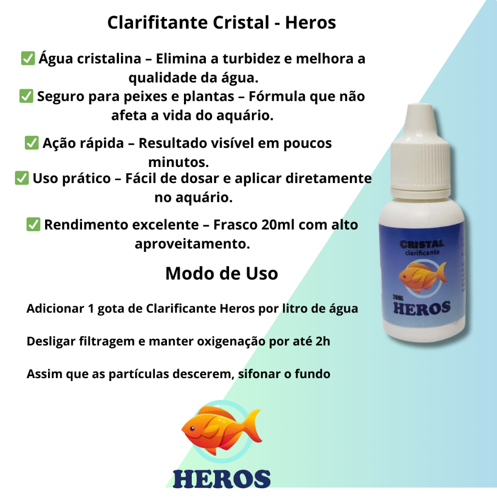 Clarificante para Aquários Heros Cristal – Água limpa, clara e saudável para seus peixes