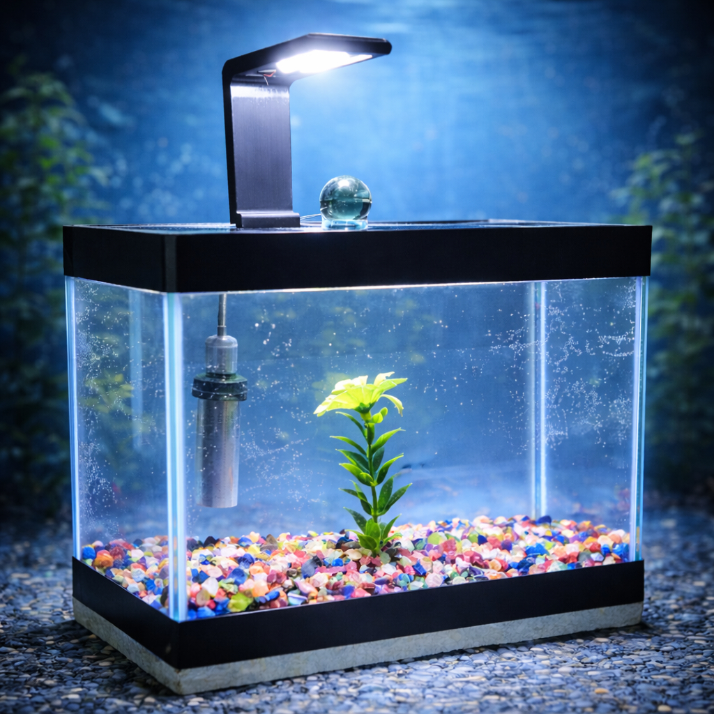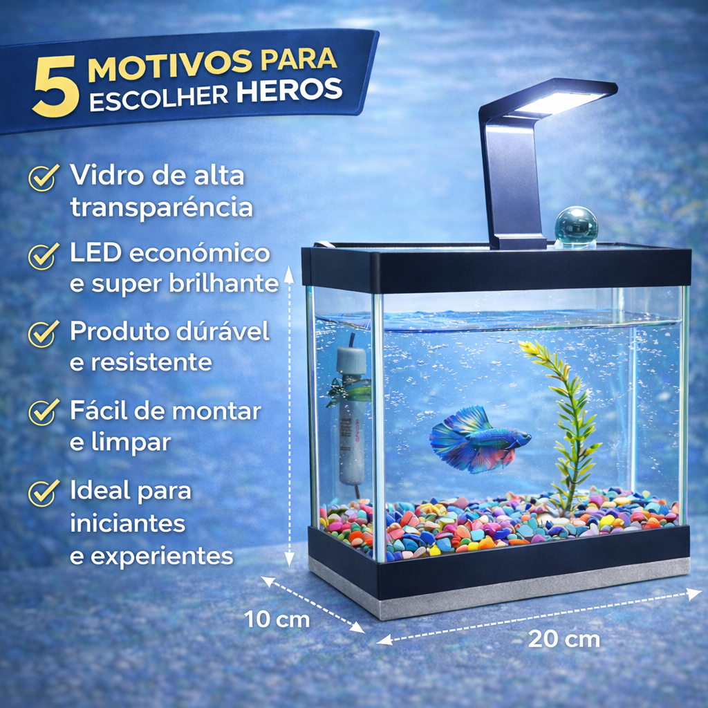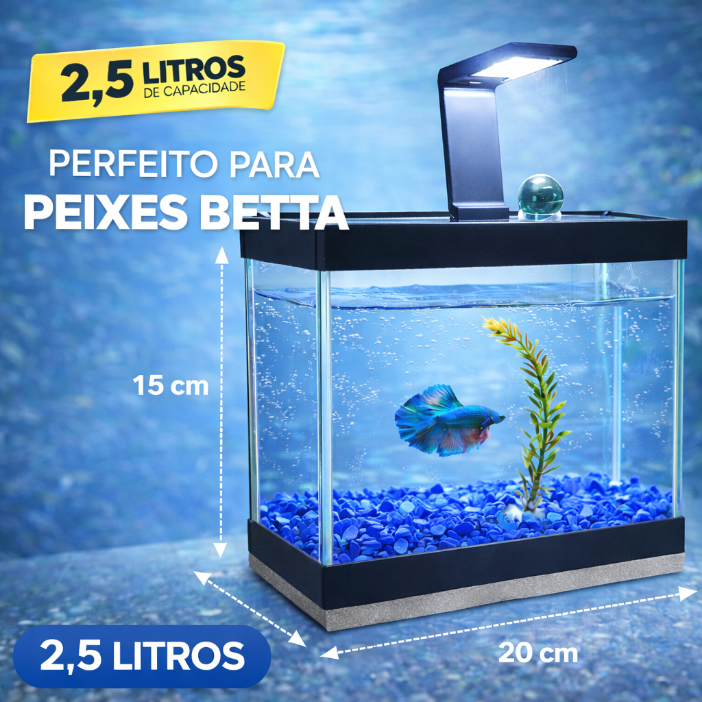 Aquário Completo Beteira - Aquário + Luminária + Decorações + Aquecedor + Ração e Anticloro