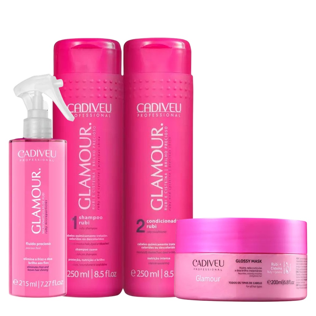 Kit Leave-in Shampoo Condicionador Máscara Glamour - Cadiveu
