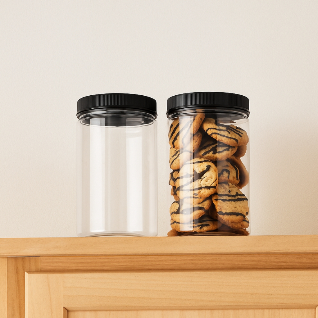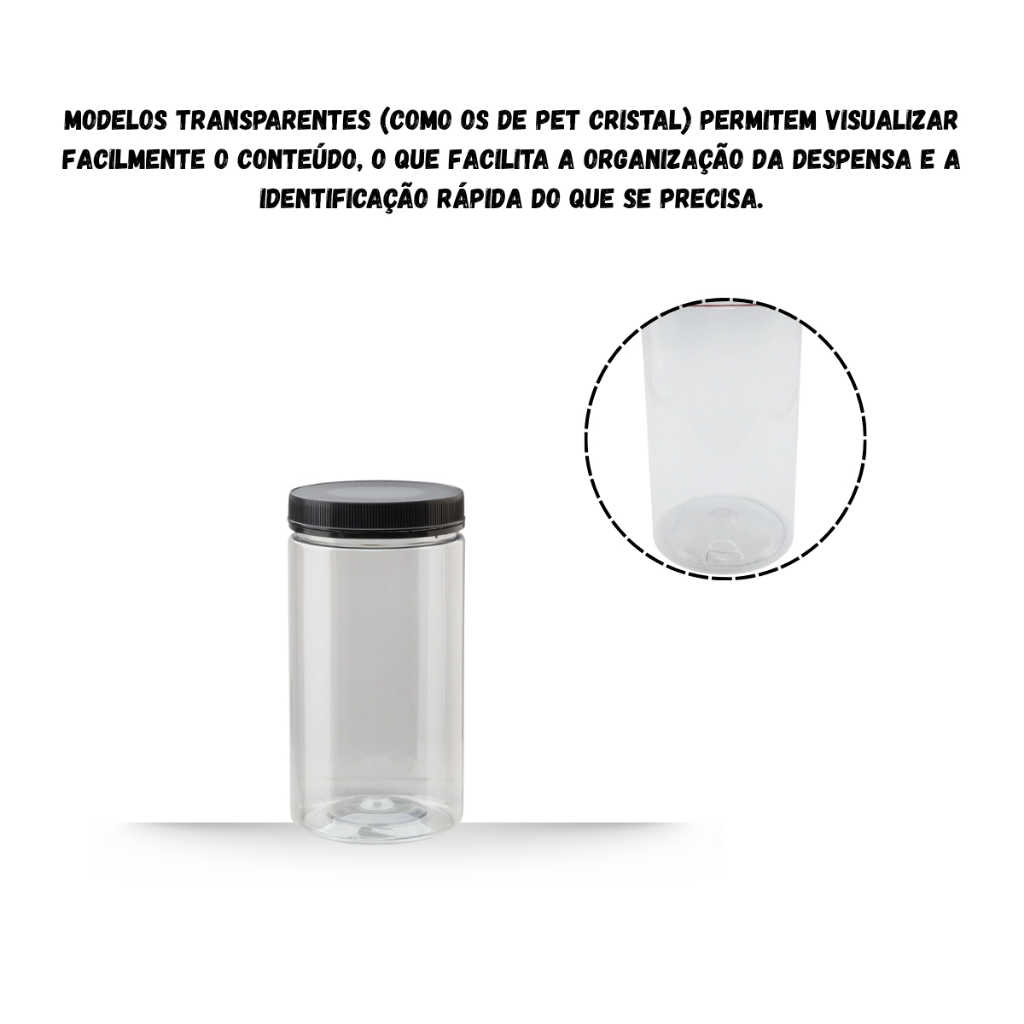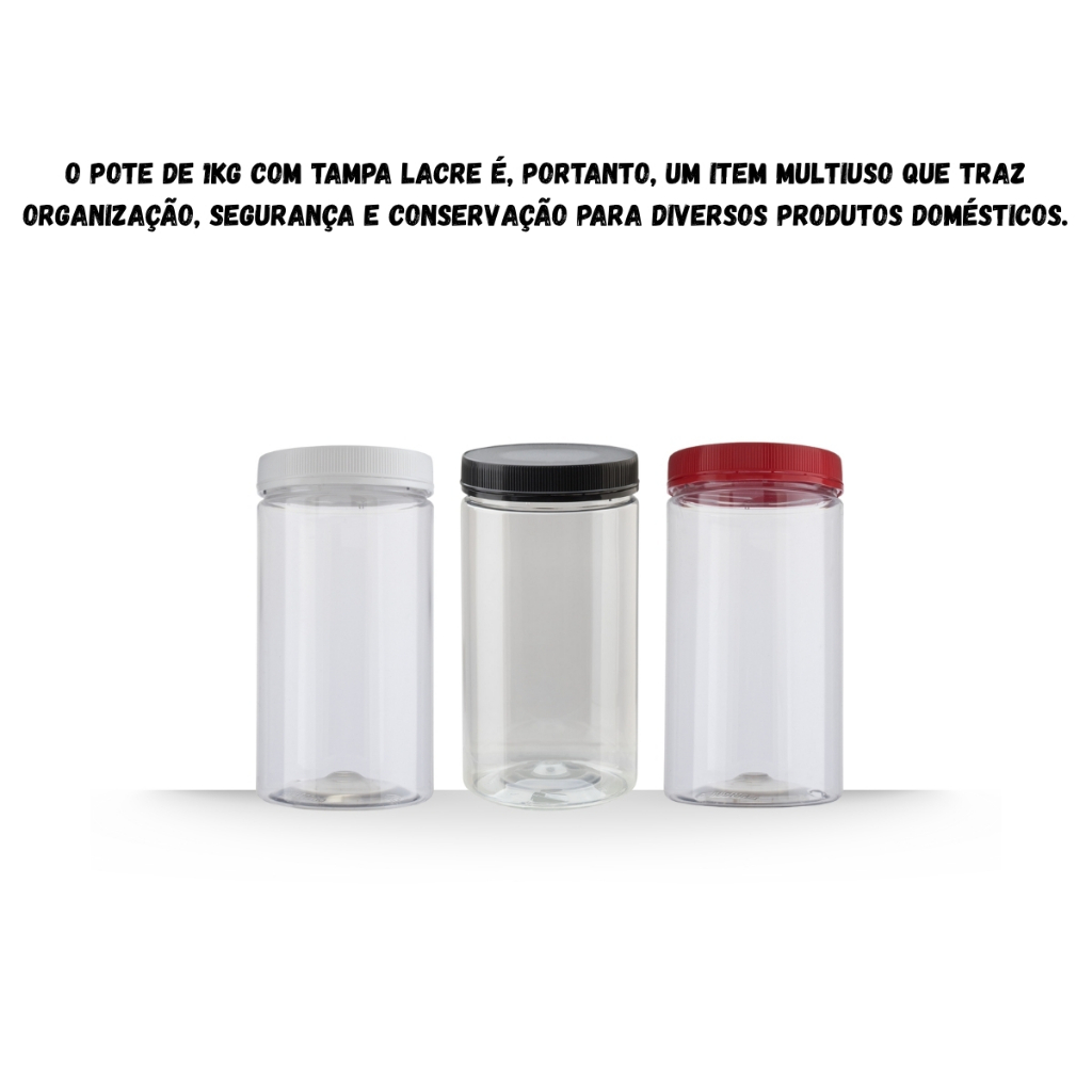 6 Potes 1kg/ml PET Cristal com Tampa Rosca Lacre Ideal Bolachas Gourmet, Suspiros, grãos,cereal, café