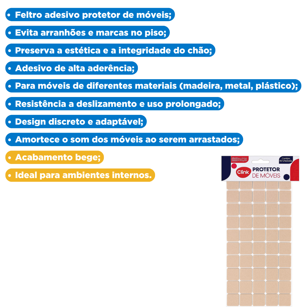Cartela Feltro Protetor Móveis Chão Piso Porcelanato Bege Quadrado Antirrisco Antirruído
