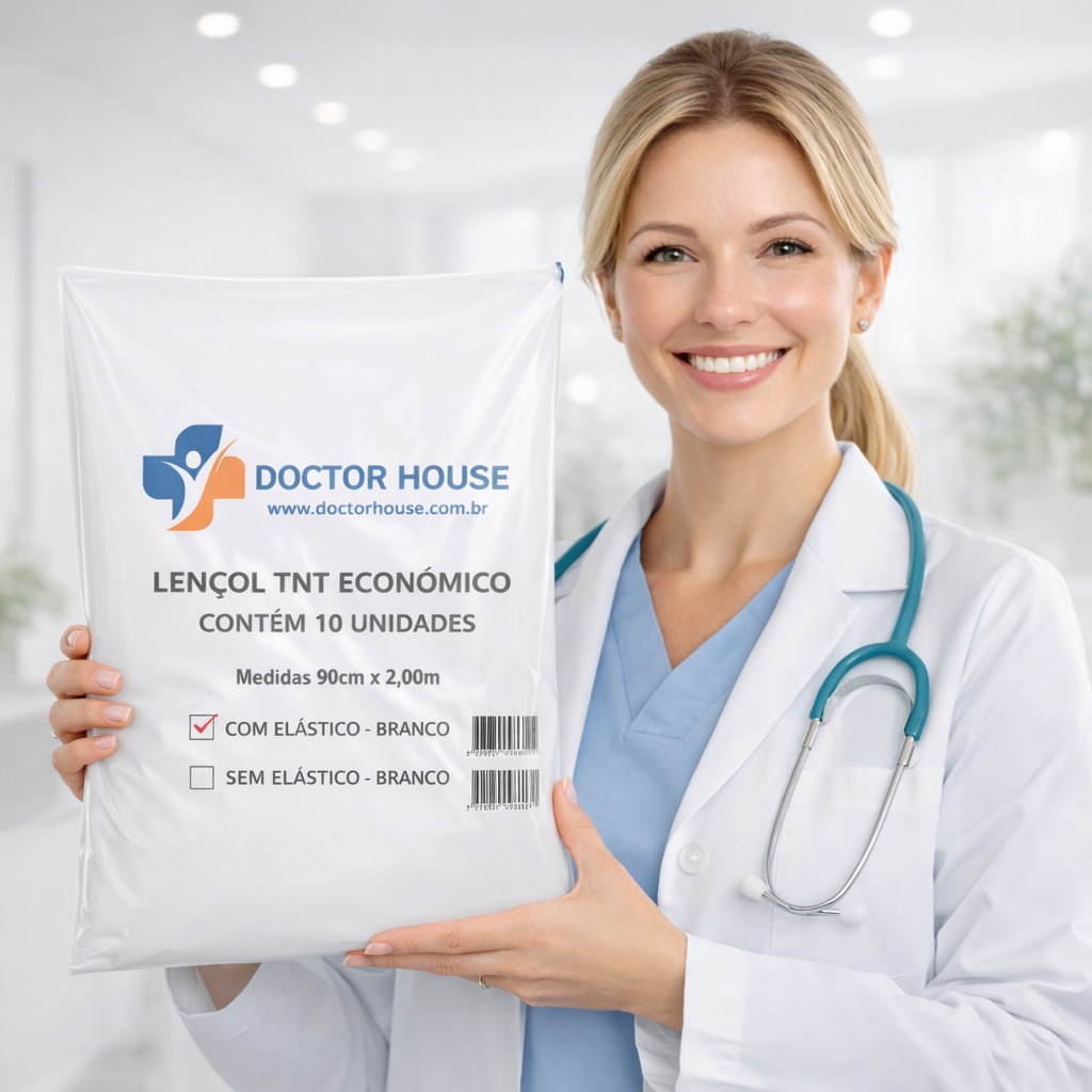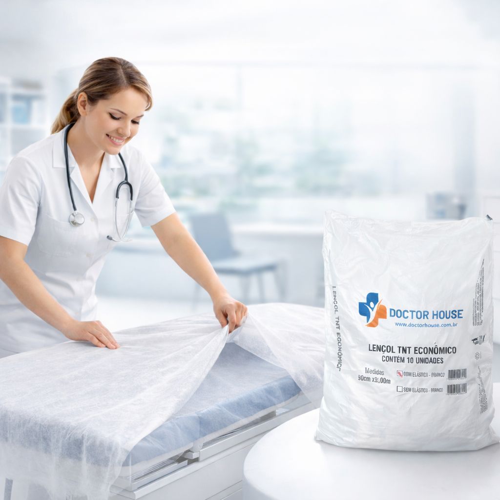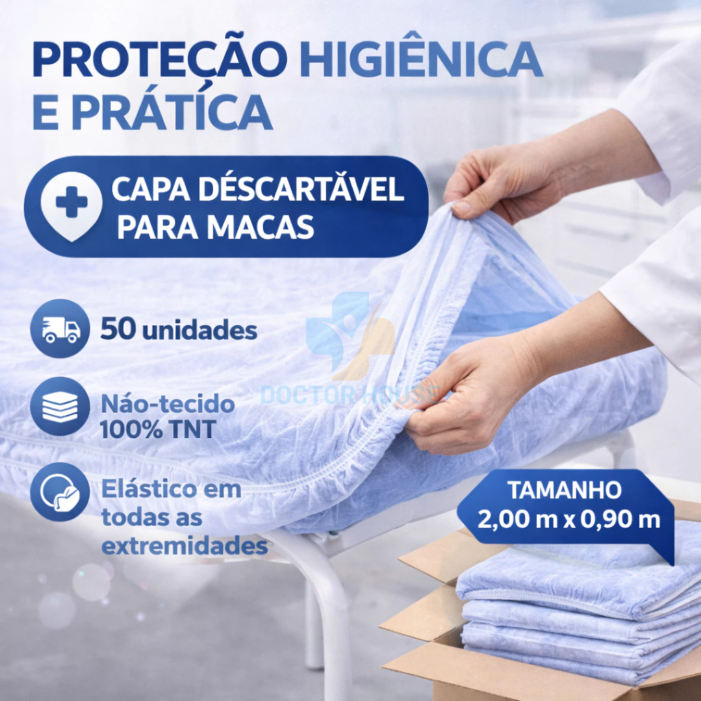 50 Lençol Descartável TNT Branco Maca 2,00x0,90 com Elástico Uso Clínico Consultório
