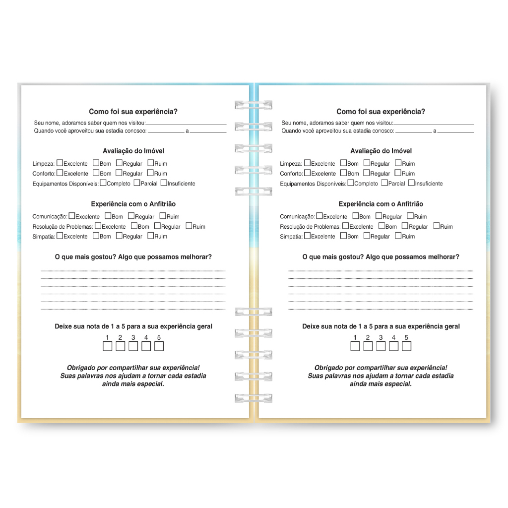 Livro de Avaliação Pousada Hotel Casa Apartamento 180 Páginas Capa Dura