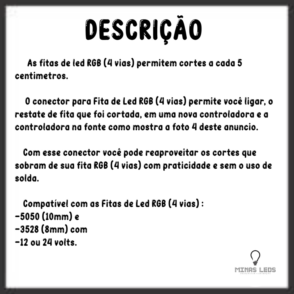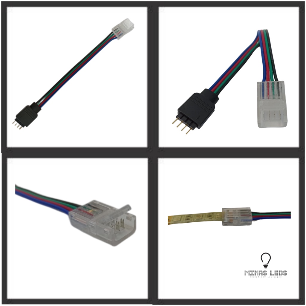 Conector Emenda Fita Led Rgb Com Rabicho Macho 5050 E 3528 4 Vias