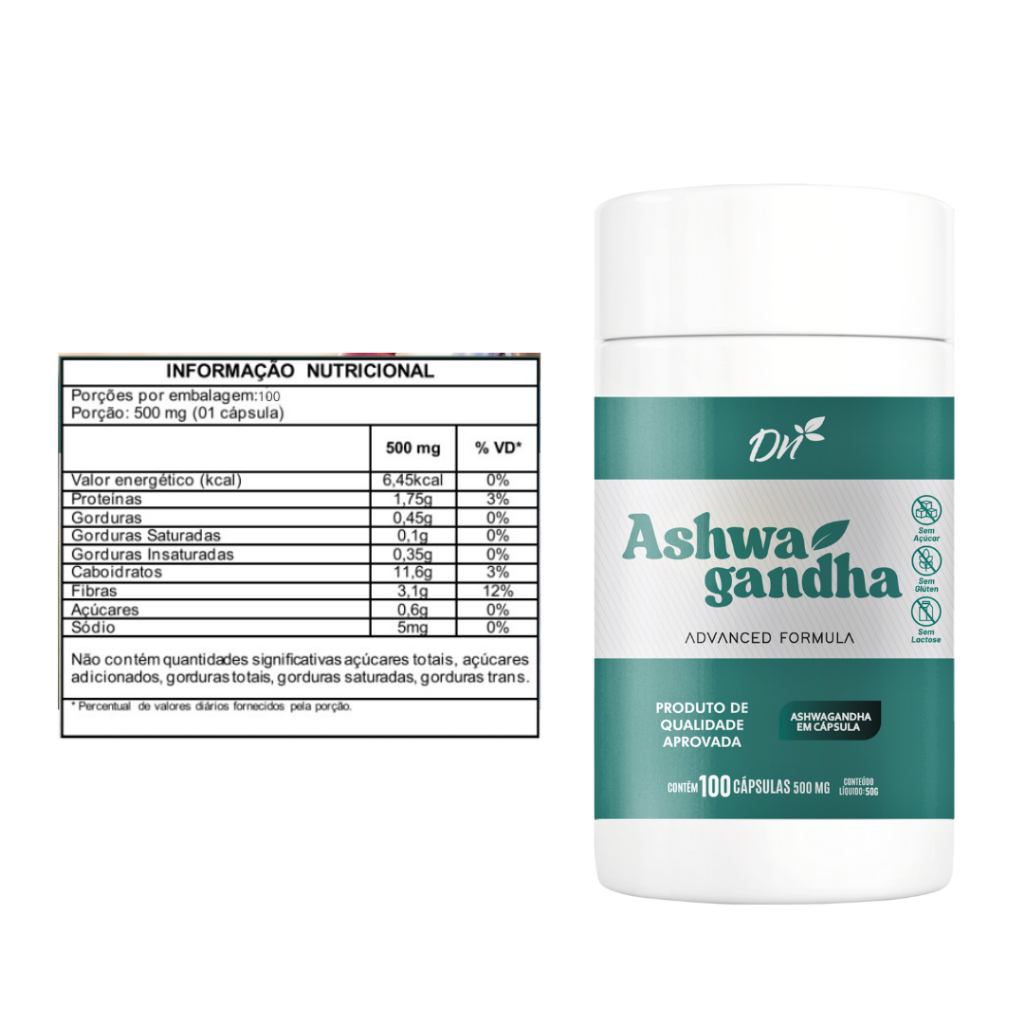 Ashwagandha Original Ginseng Indiano Puro 100 Cápsulas 500mg