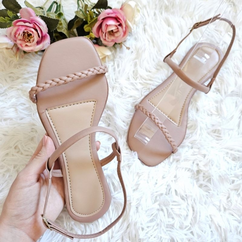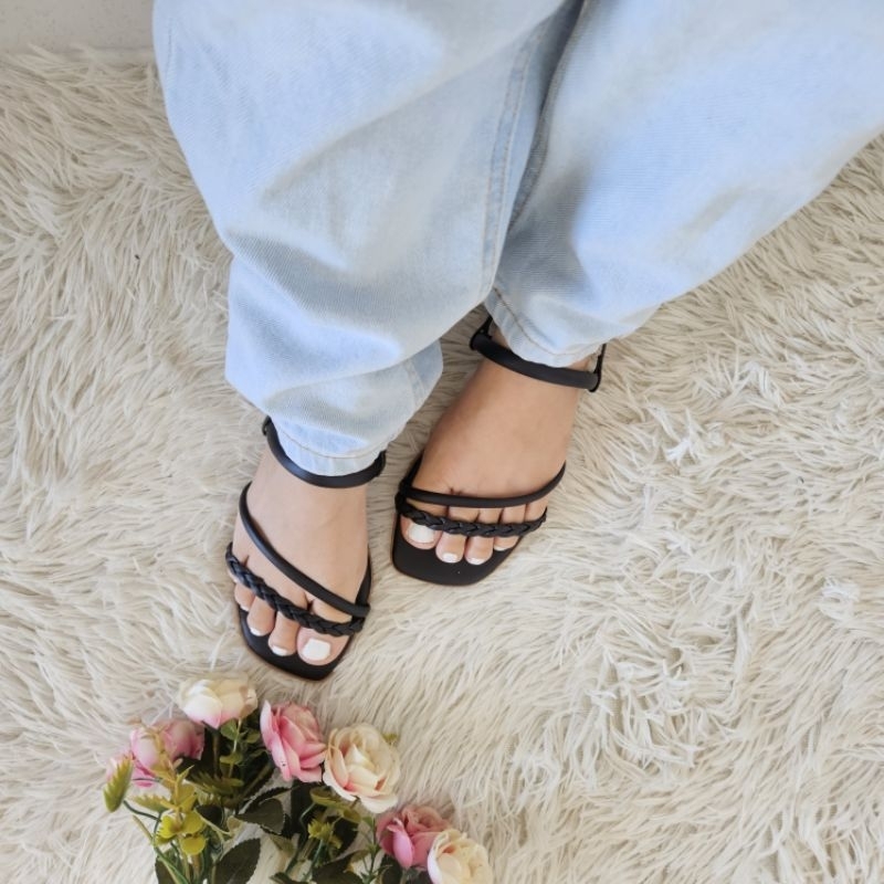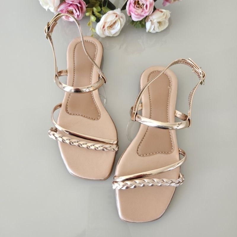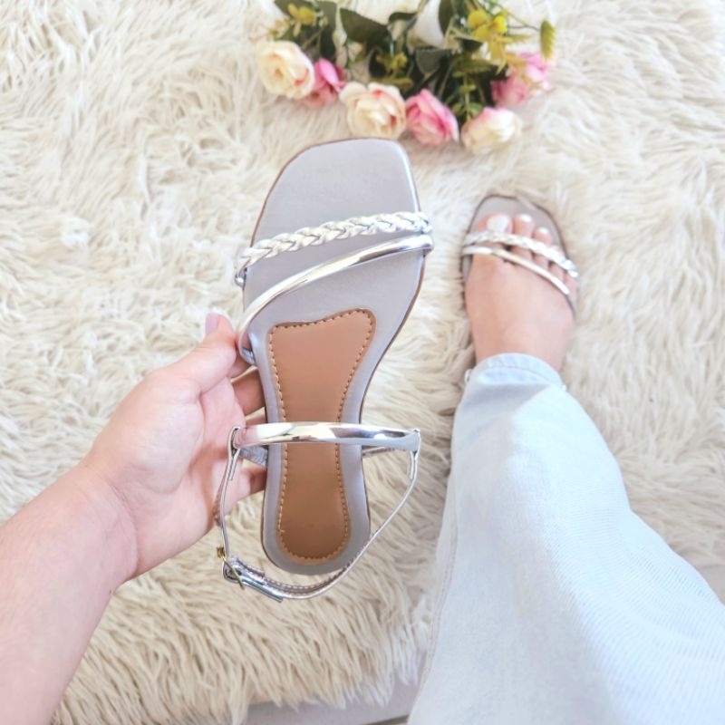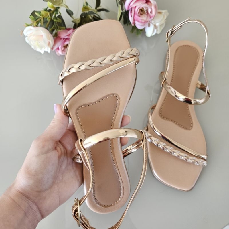 Sandália Rasteirinha Feminina Trançada Rasteiras com Fivela