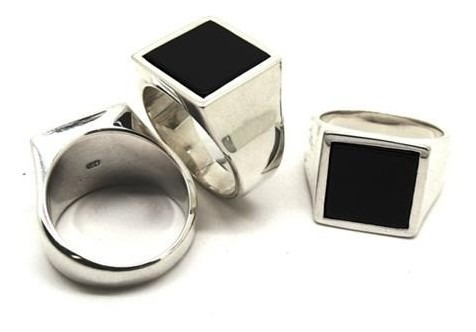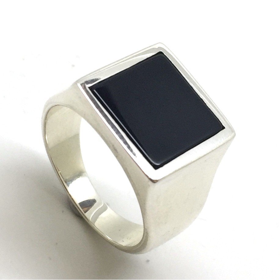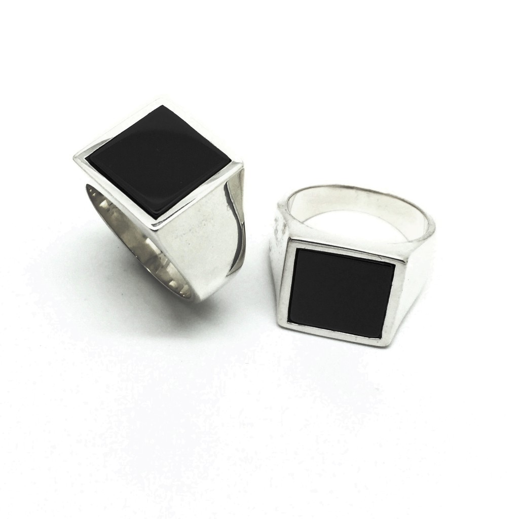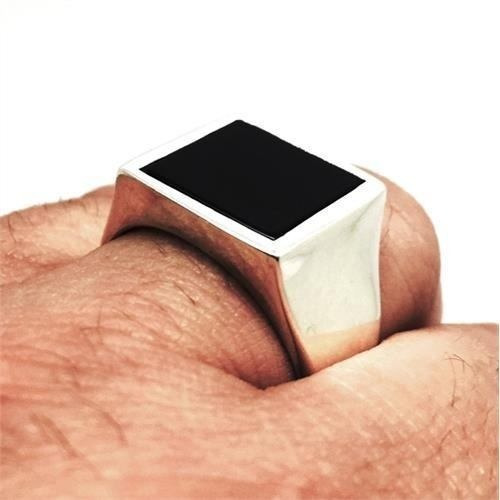 Anel Masculino Quadrado Pedra Preta Prata Comendador 19179