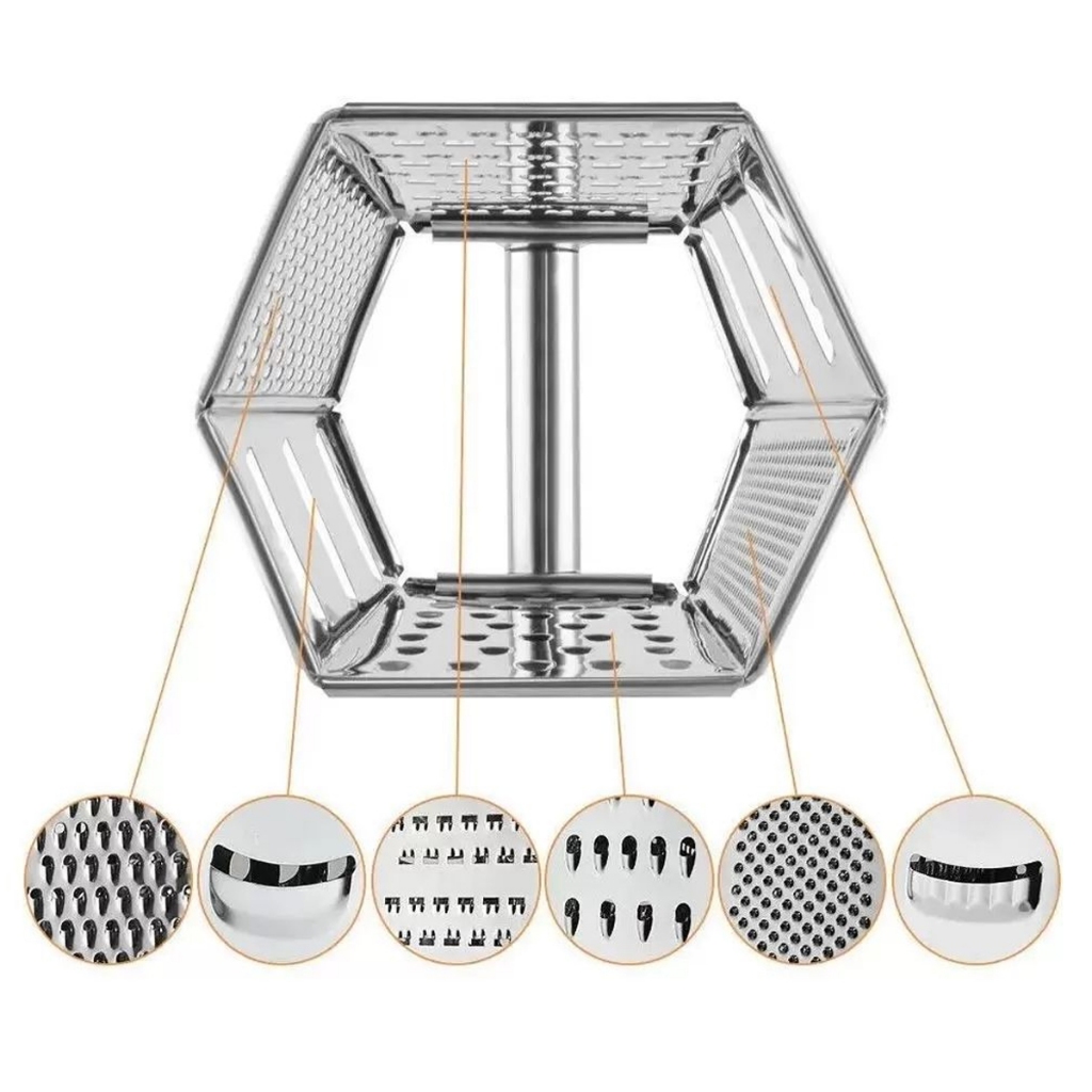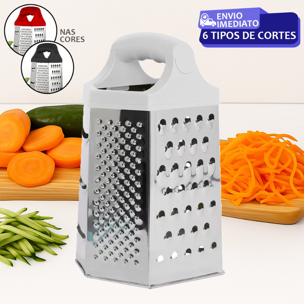 Ralador Inox 6 Lados Multiuso 23cm Cozinha Legumes Queijo Resistente Fácil Uso Prático
