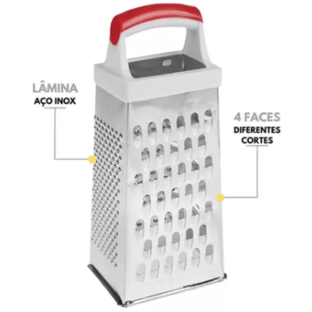 Ralador Inox 4 Lados Multiuso 24cm Cozinha Legumes Queijo Resistente Fácil Uso Prático