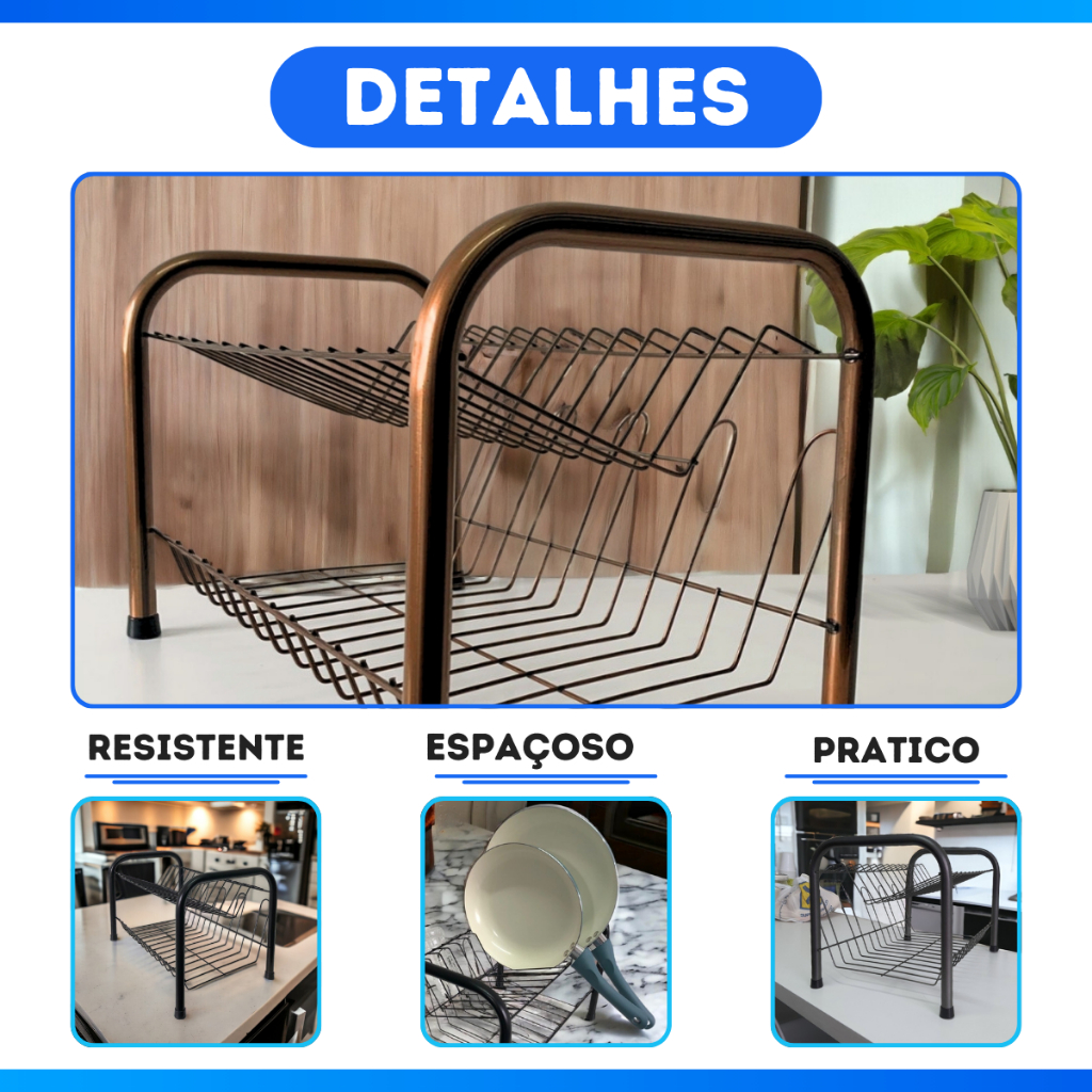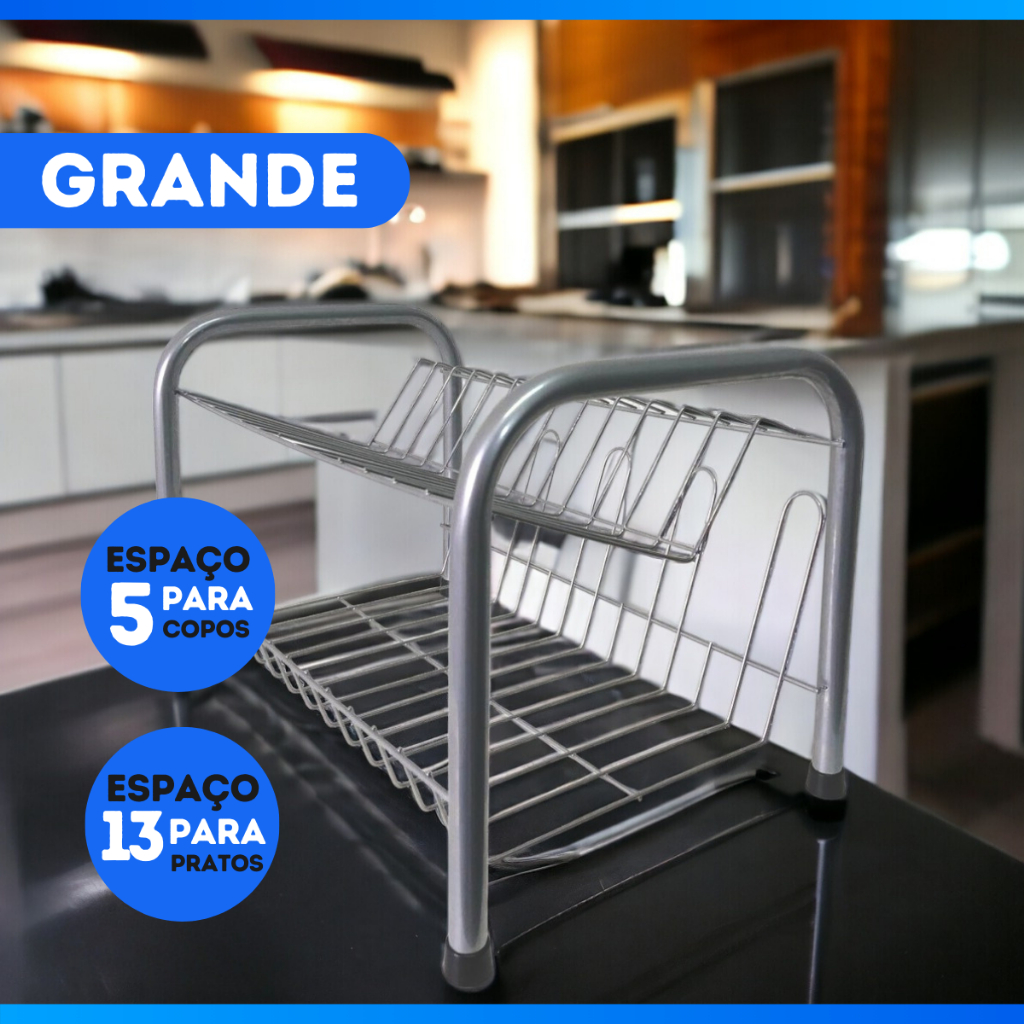 Escorredor De Louças Duplo Moderno 13 Pratos 2 Andares Copos Pia Multiuso