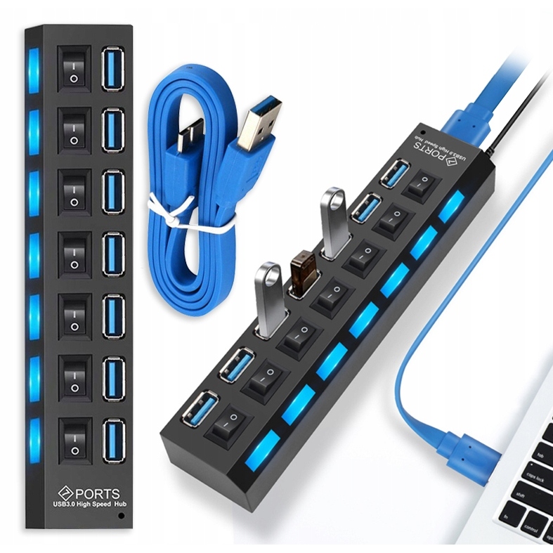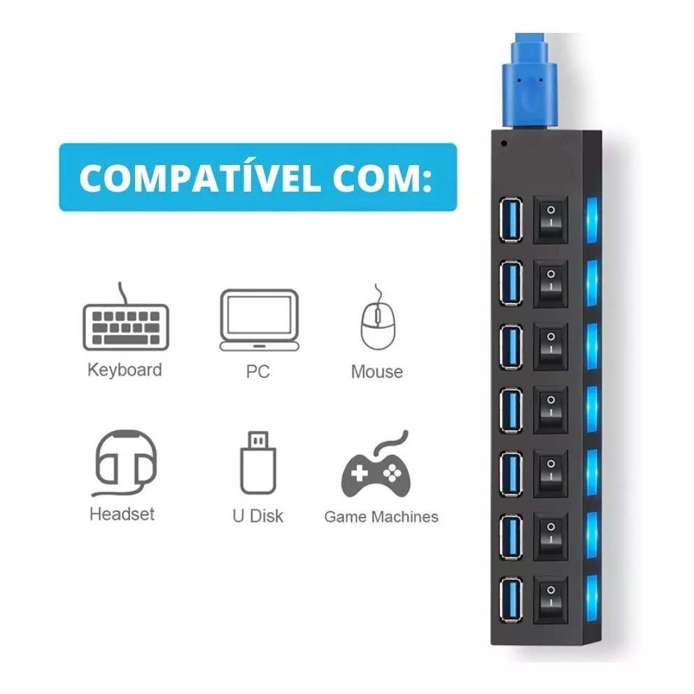 Hub Usb Cabo Extensor Régua Usb 3.0 7 Portas High Speed Hd Pen Drive Pc