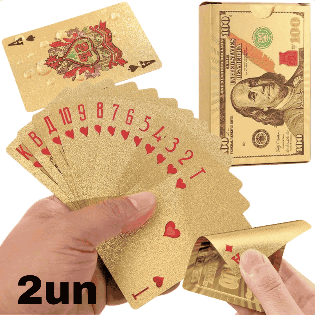2 Baralho Dolar Dourado Ouro Folheado A Prova D'agua Poker 52 Cartas