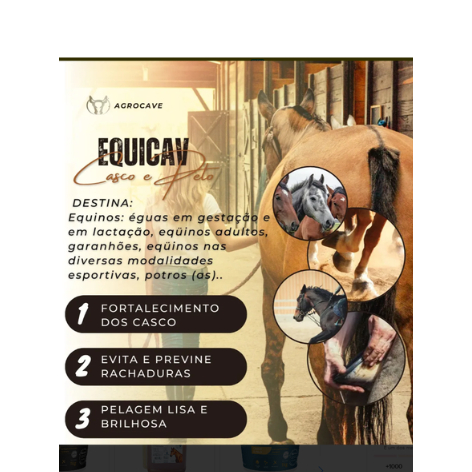 Equicav Premium Casco e Pelo 1Kg - Agrocav Suplemento Para Equinos.