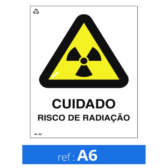 Placa Sinalização - A6 - Cuidado Risco de Radiação - Sinalização de Emergencia - Sinalização Bombeiro