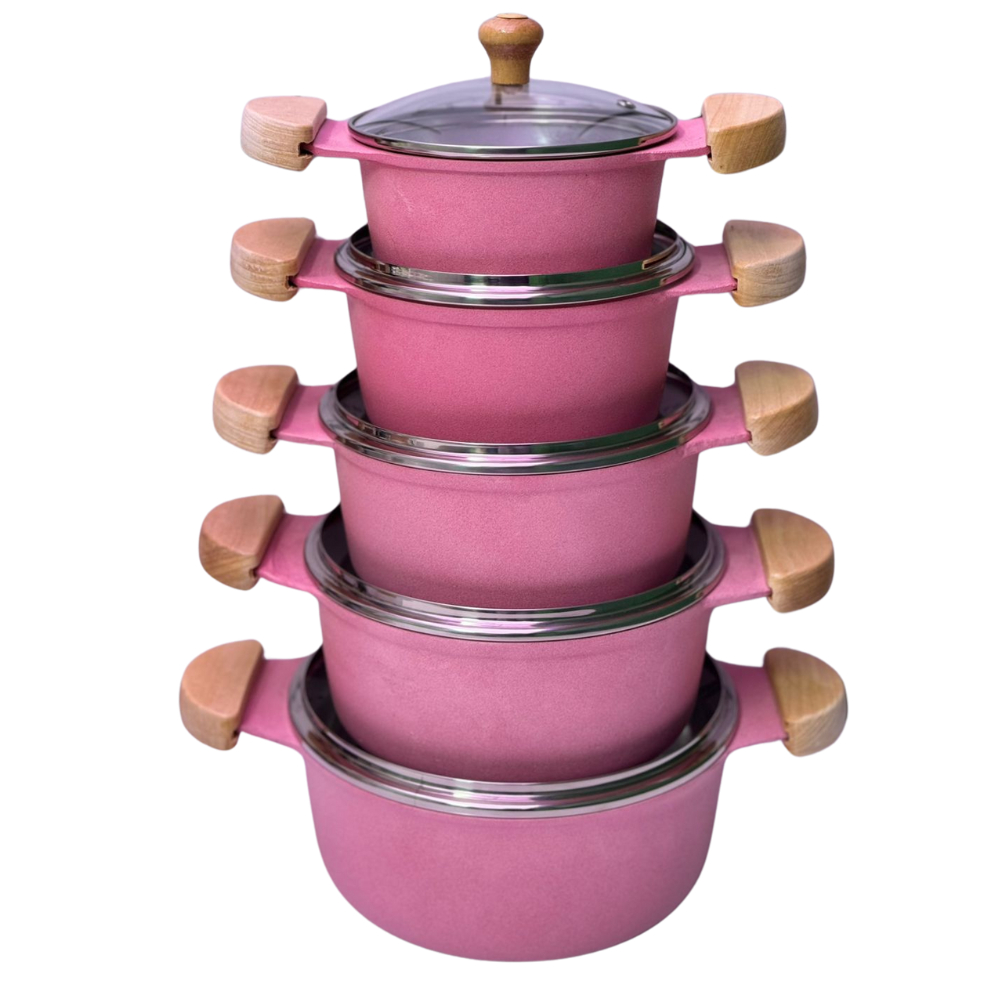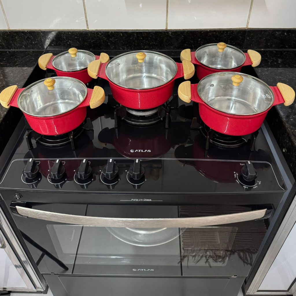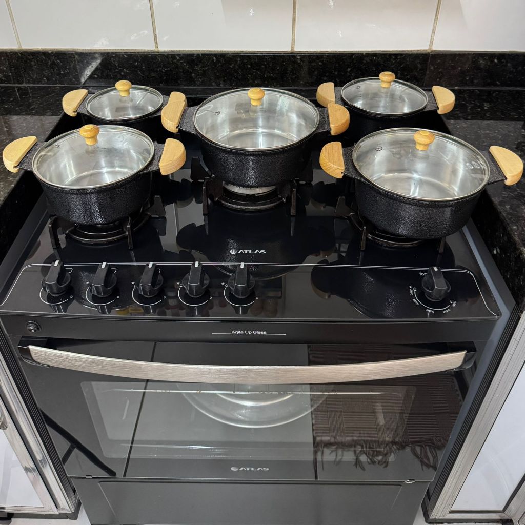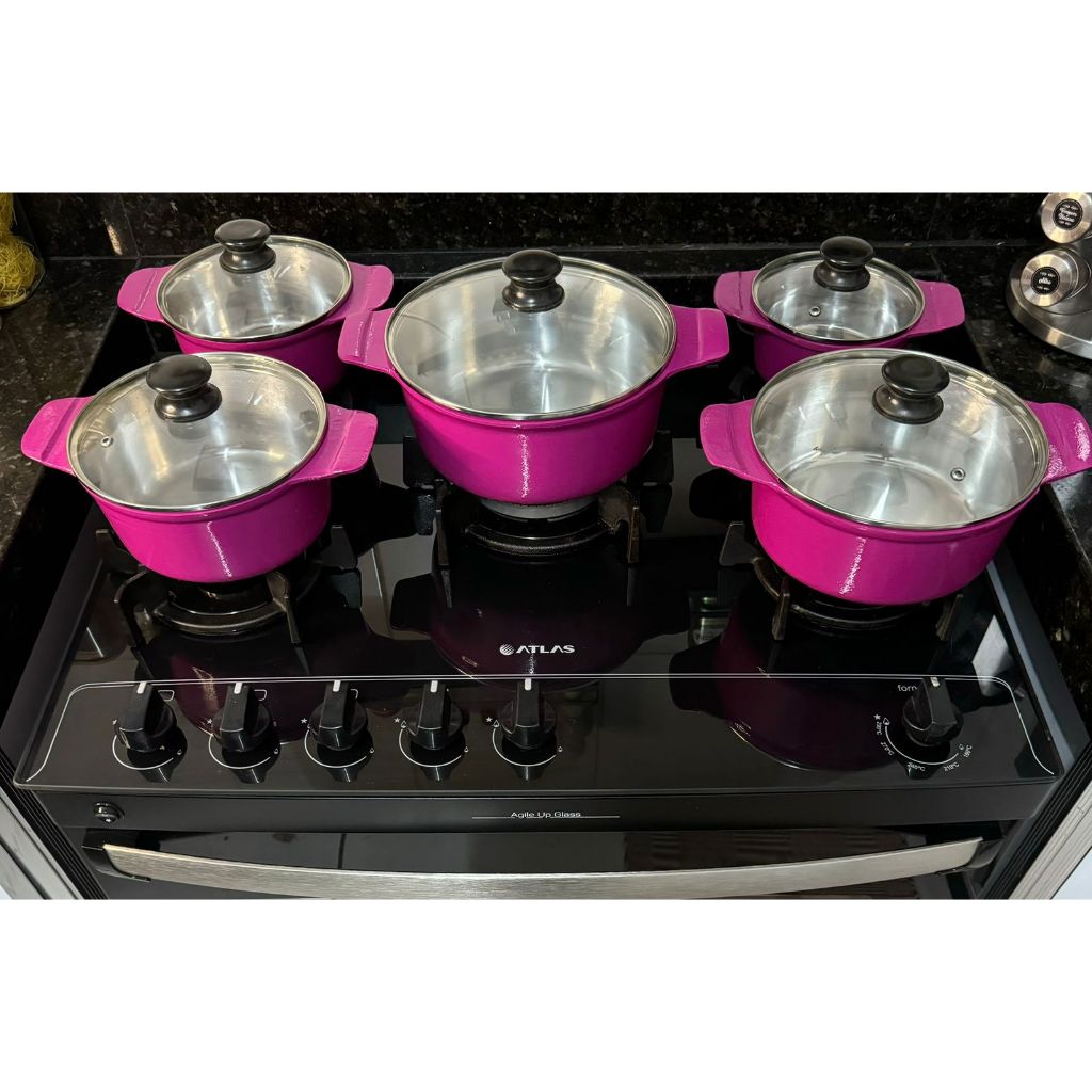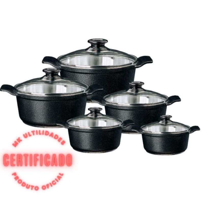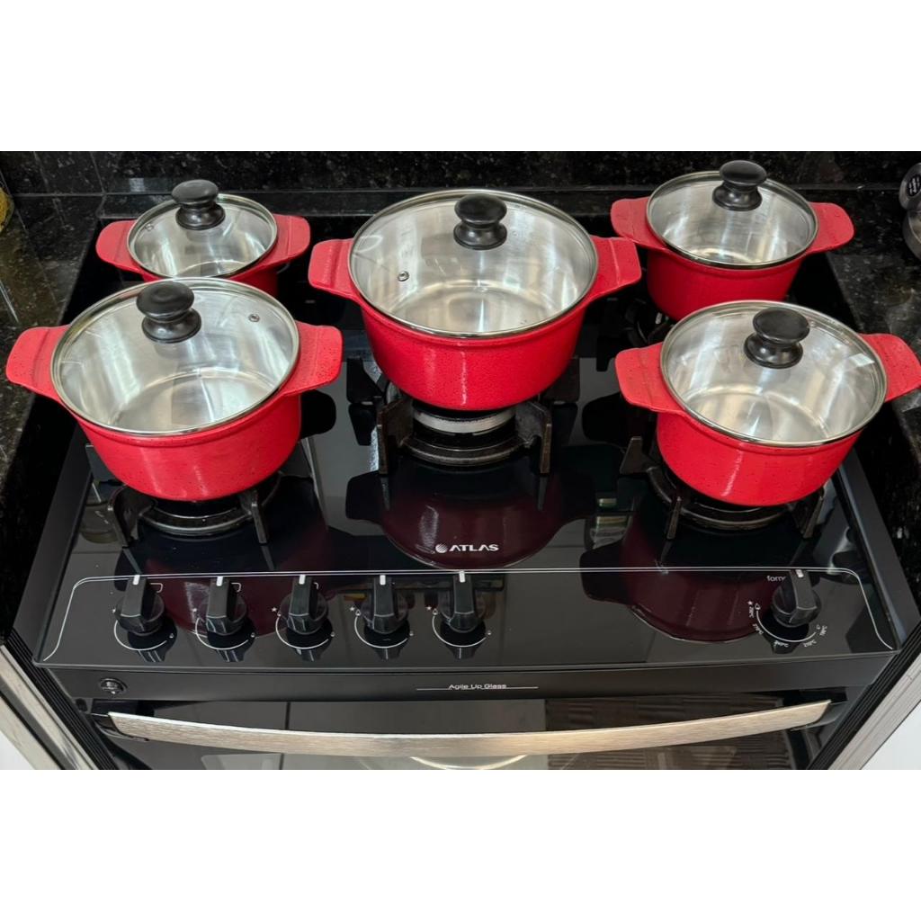 Jogo de Panelas Grossas em alumínio batido Fundido Tampa de vidro