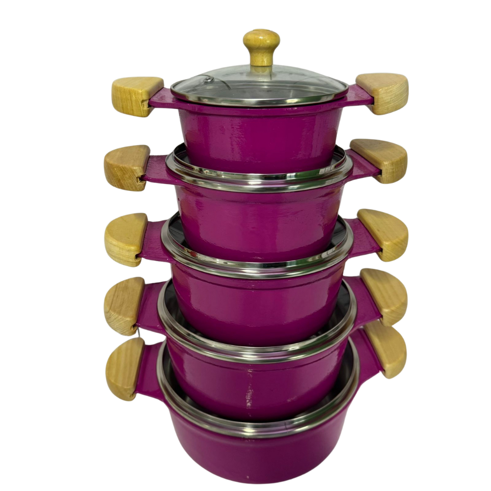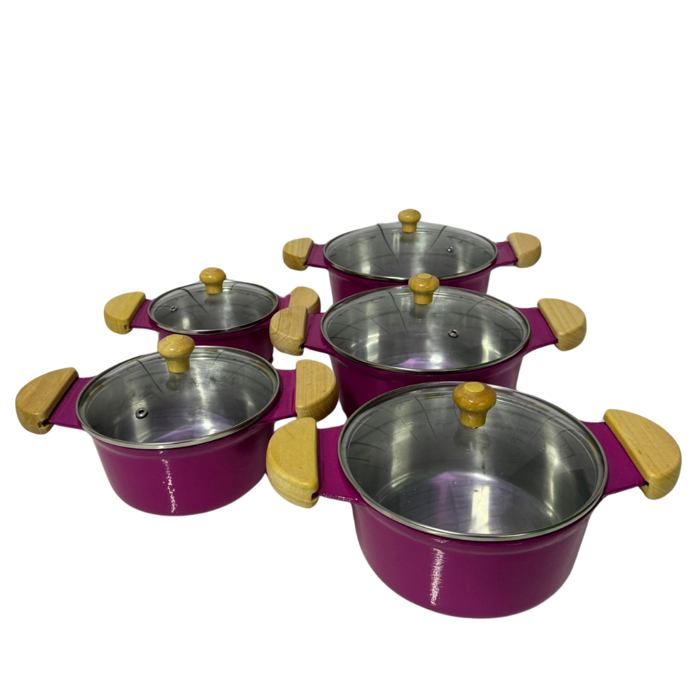 jogo de Panelas Grossas em alumínio batido Fundido rosa Tampa de vidro
