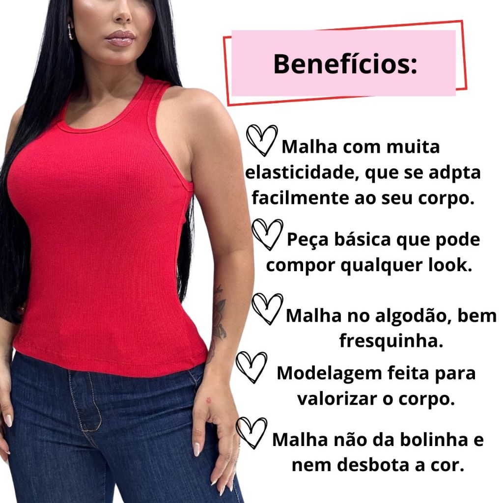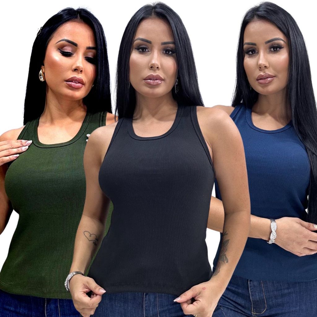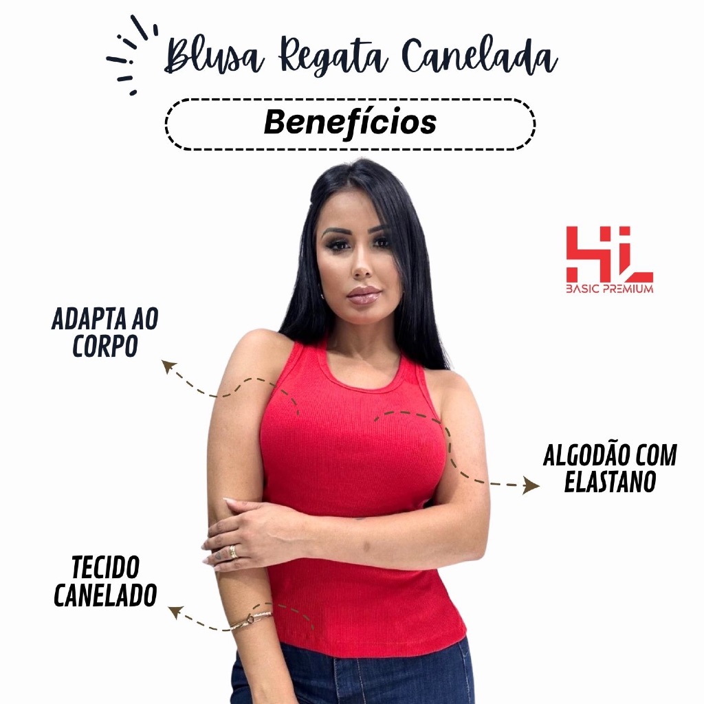 Regata Canelada Feminina Blusa Estilosa Algodão com Elastano