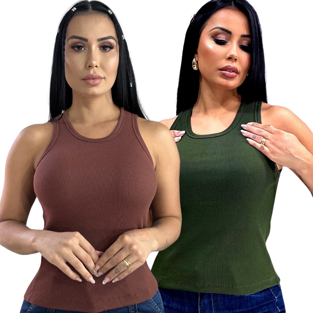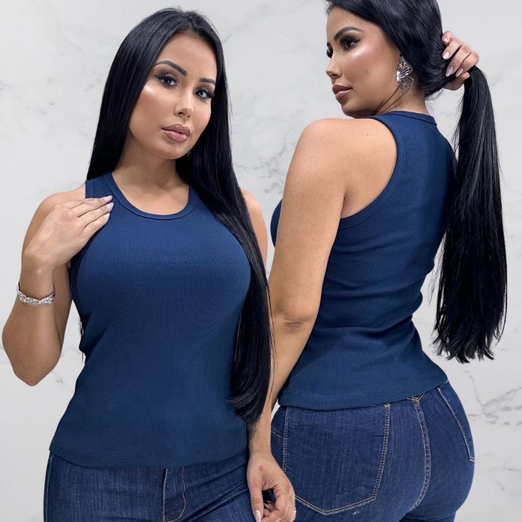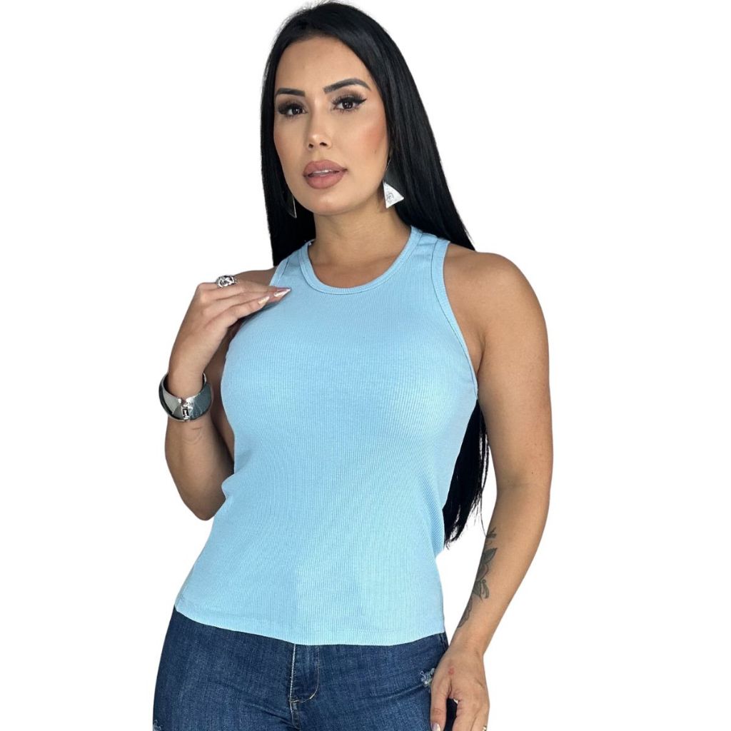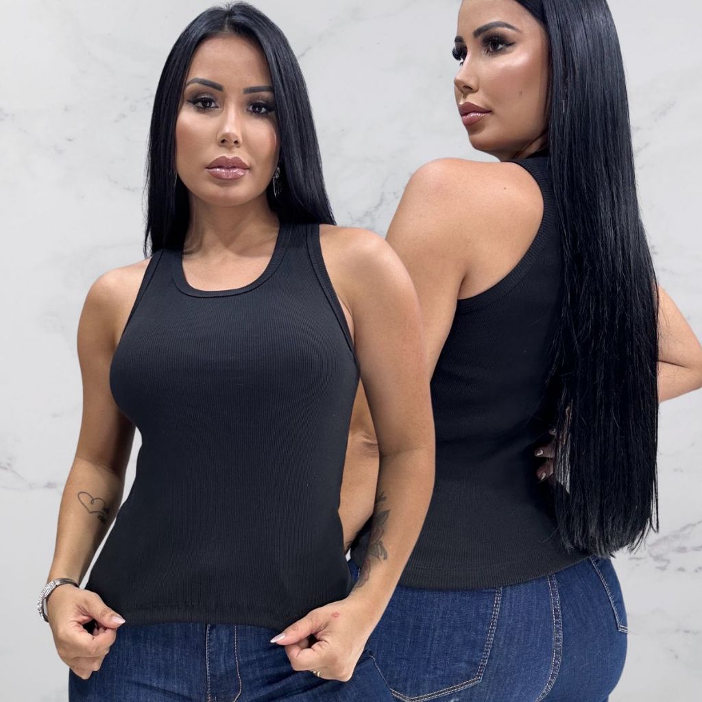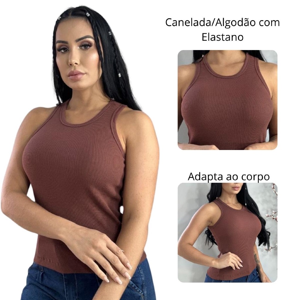 Blusa Feminina Regata Canelada Estilosa Algodão com Elastano