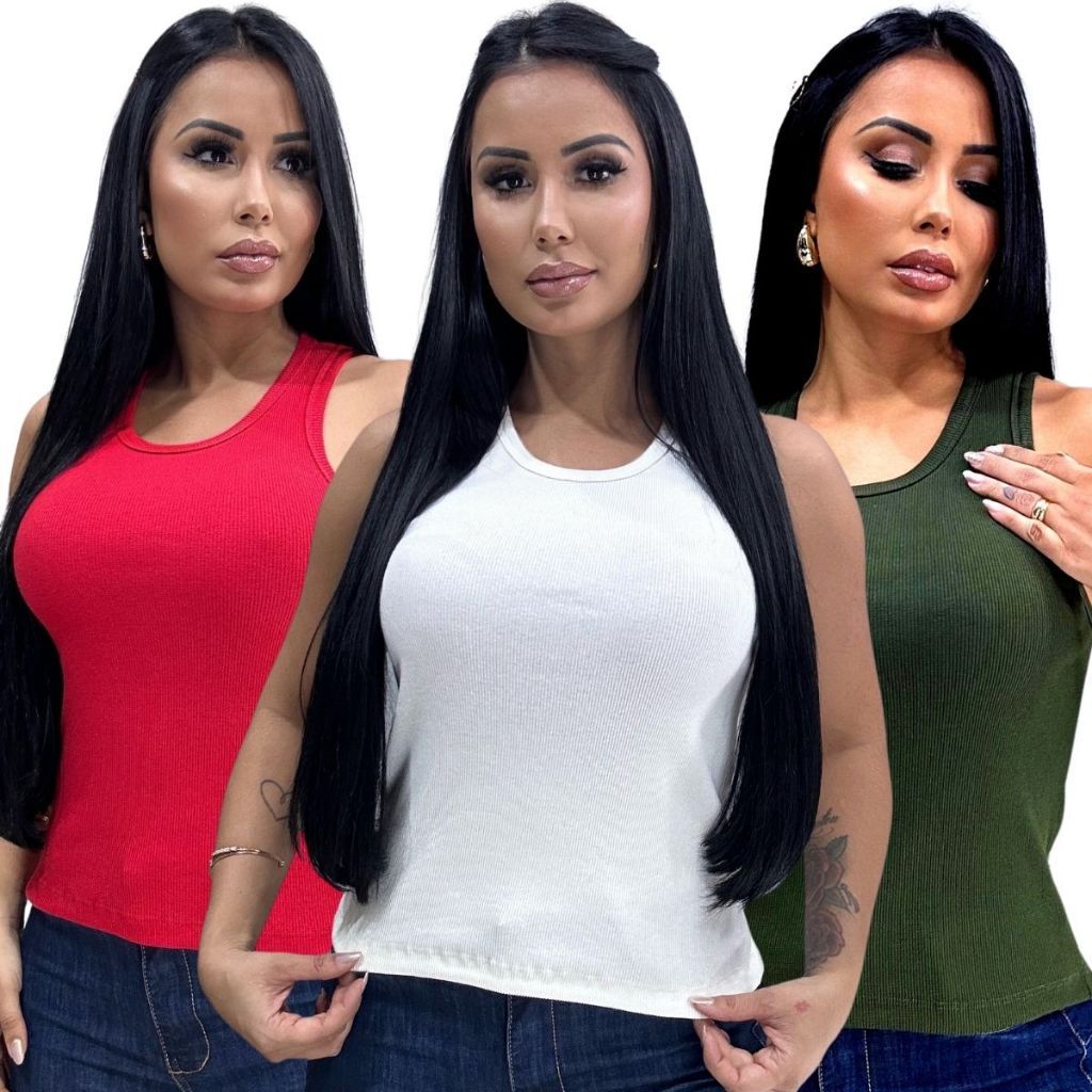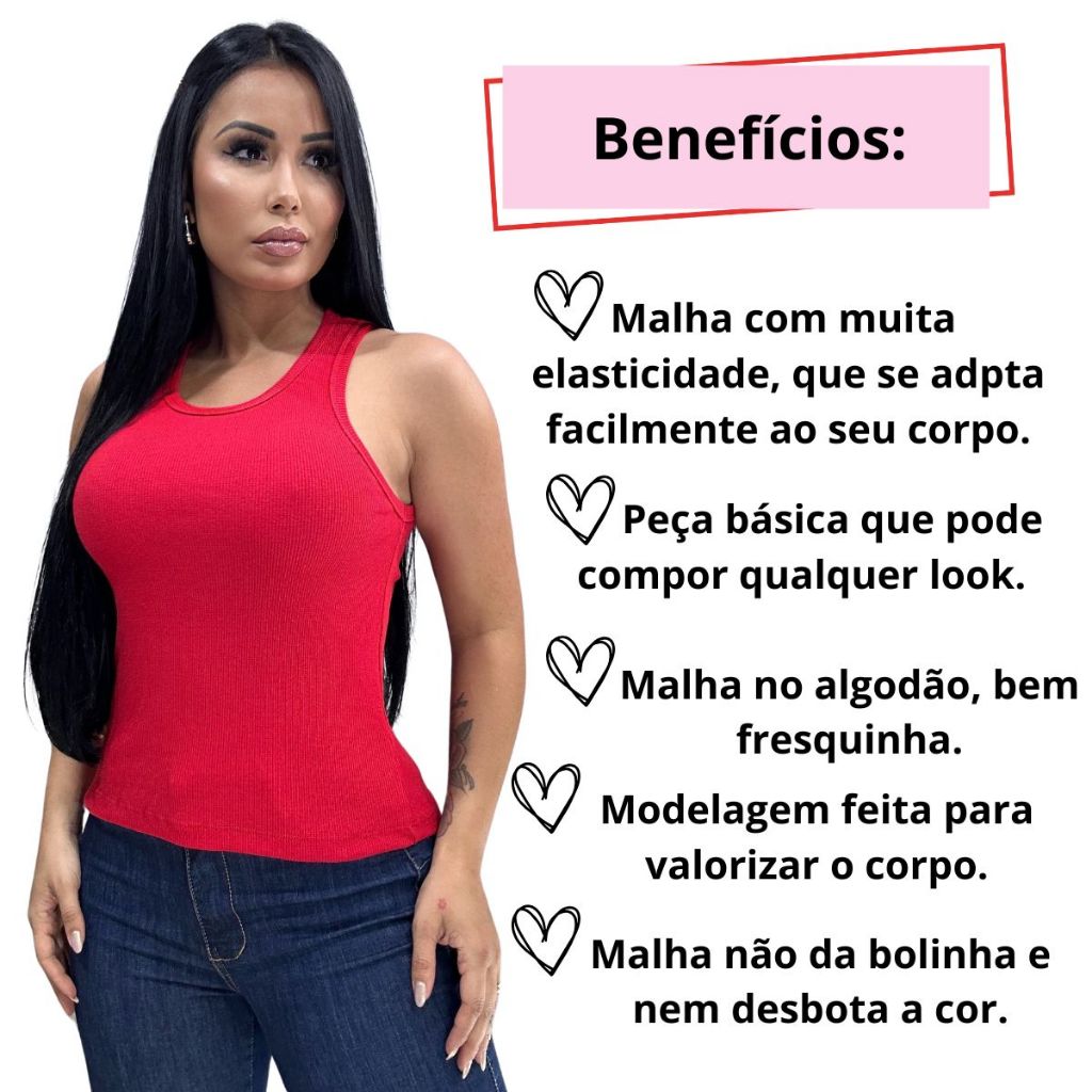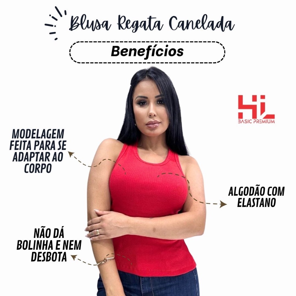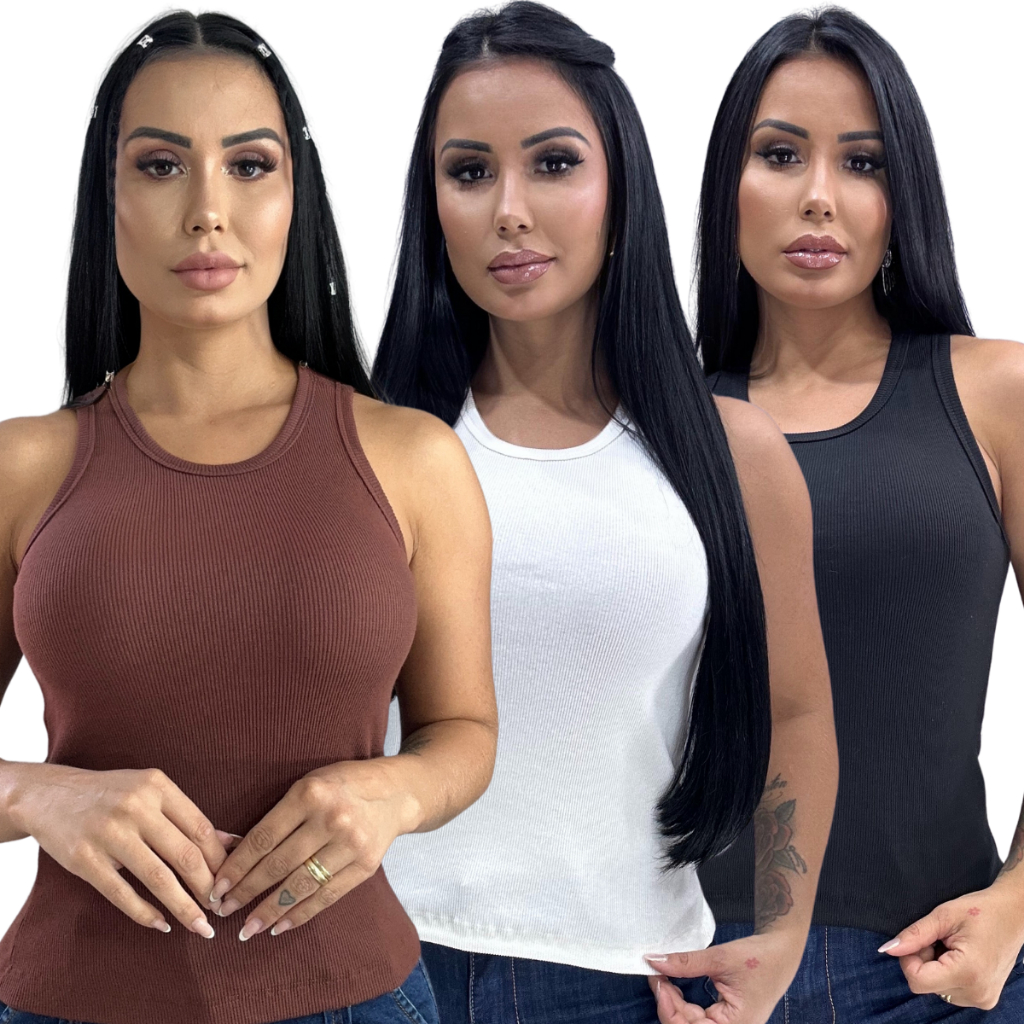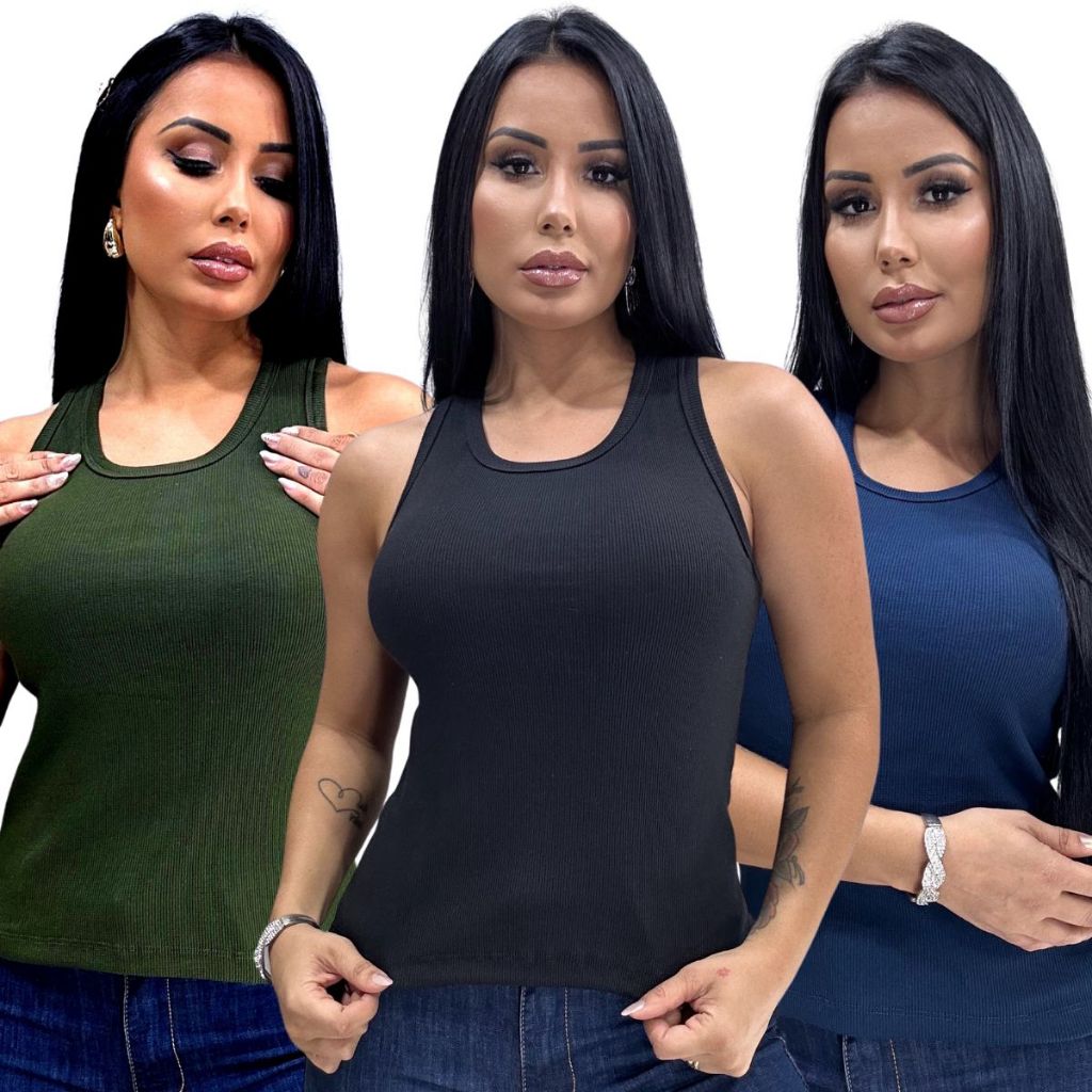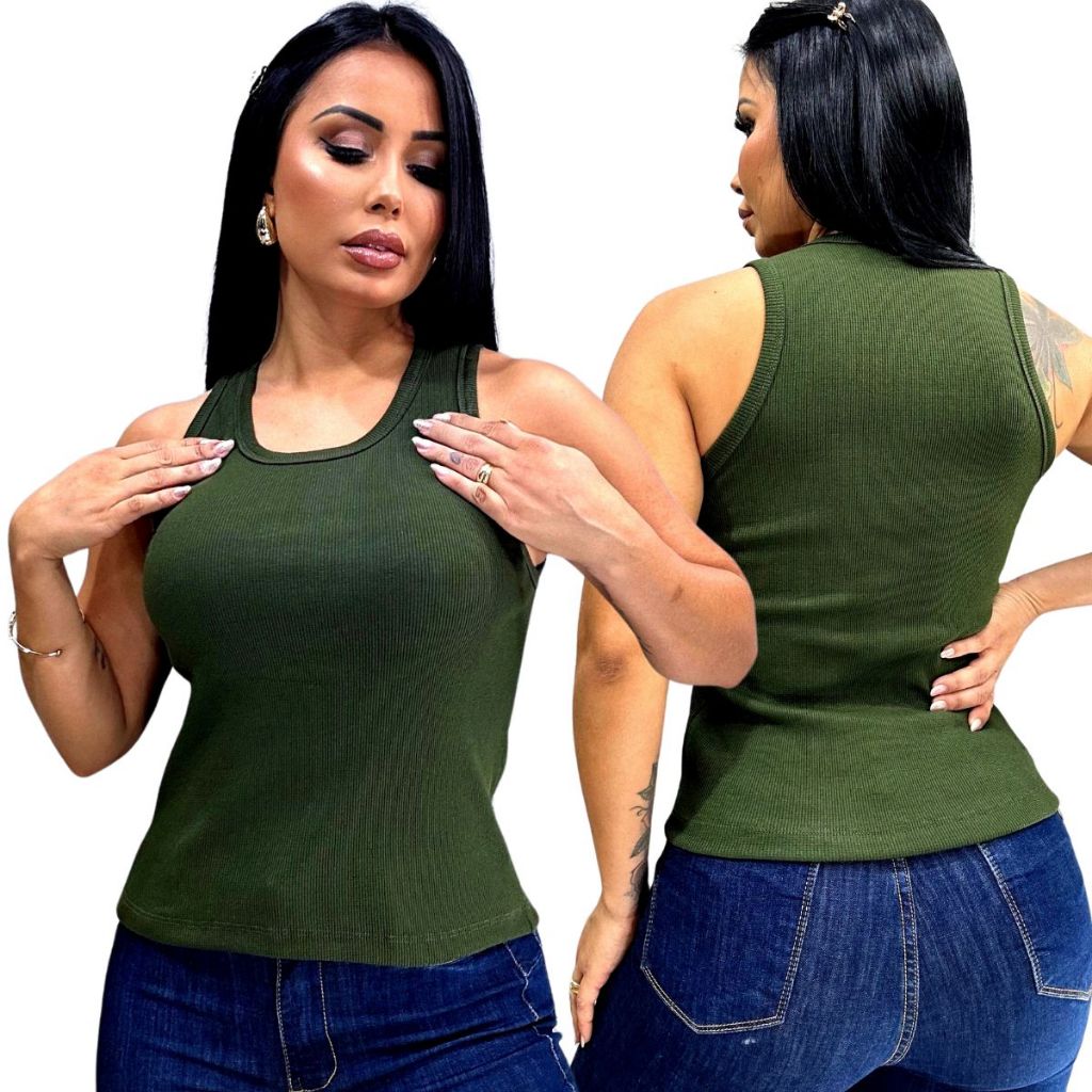 Blusa Feminina Regata Canelada Estilosa Algodão com Elastano