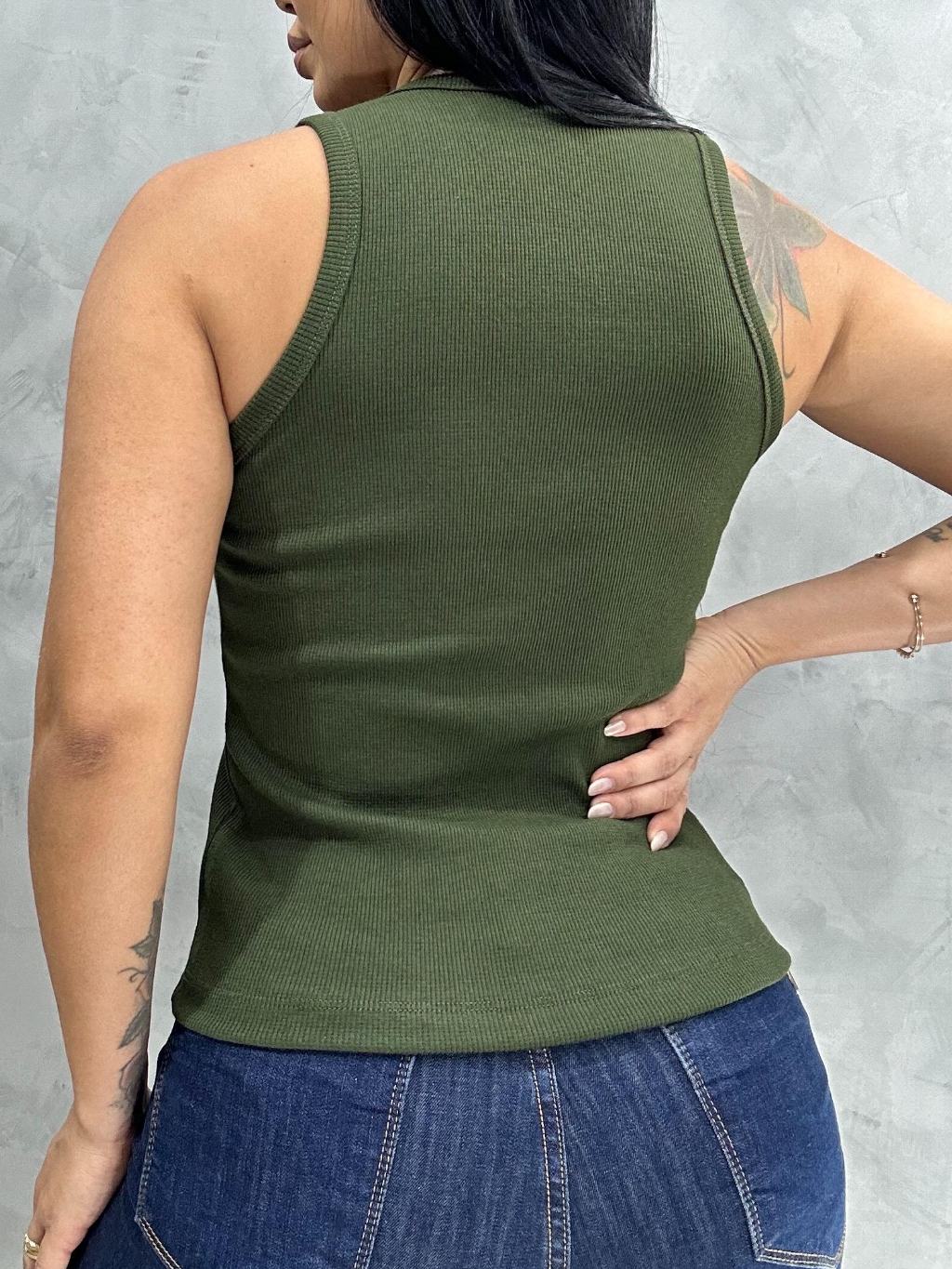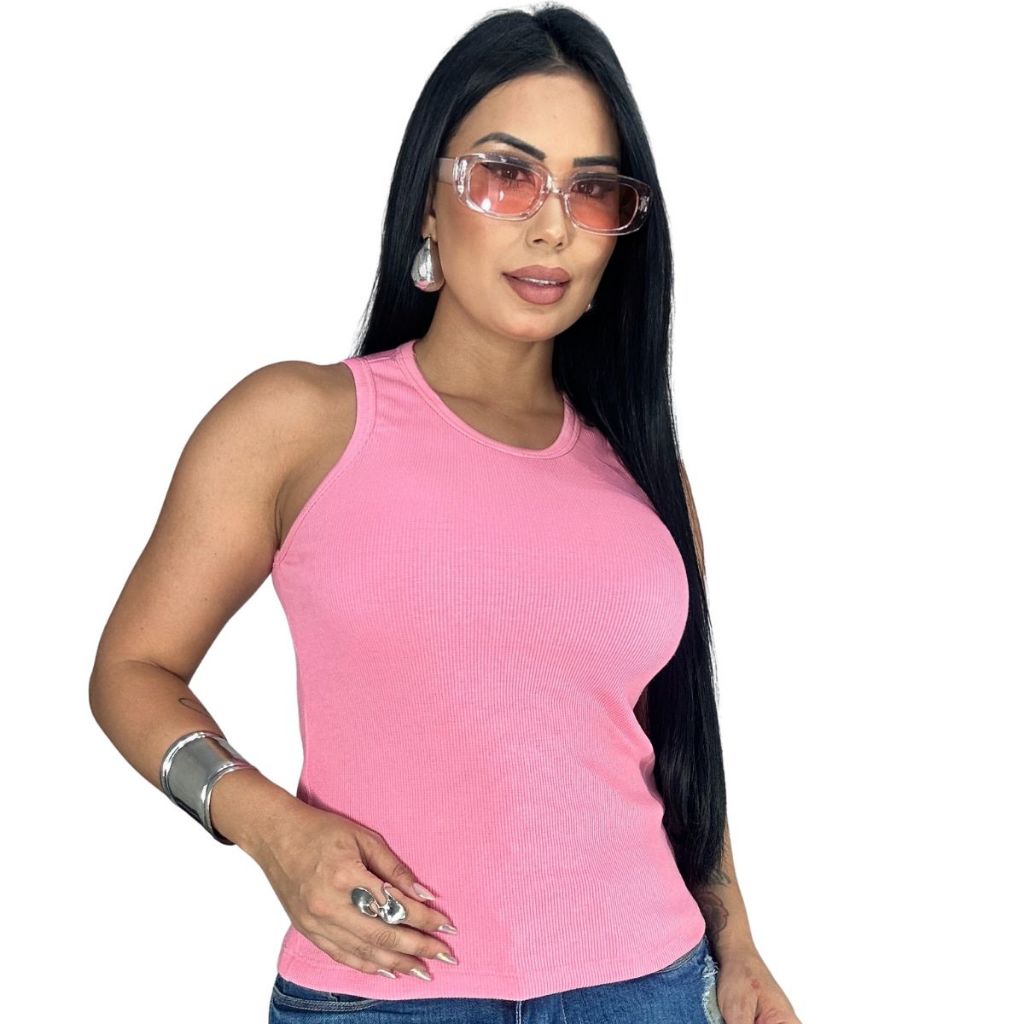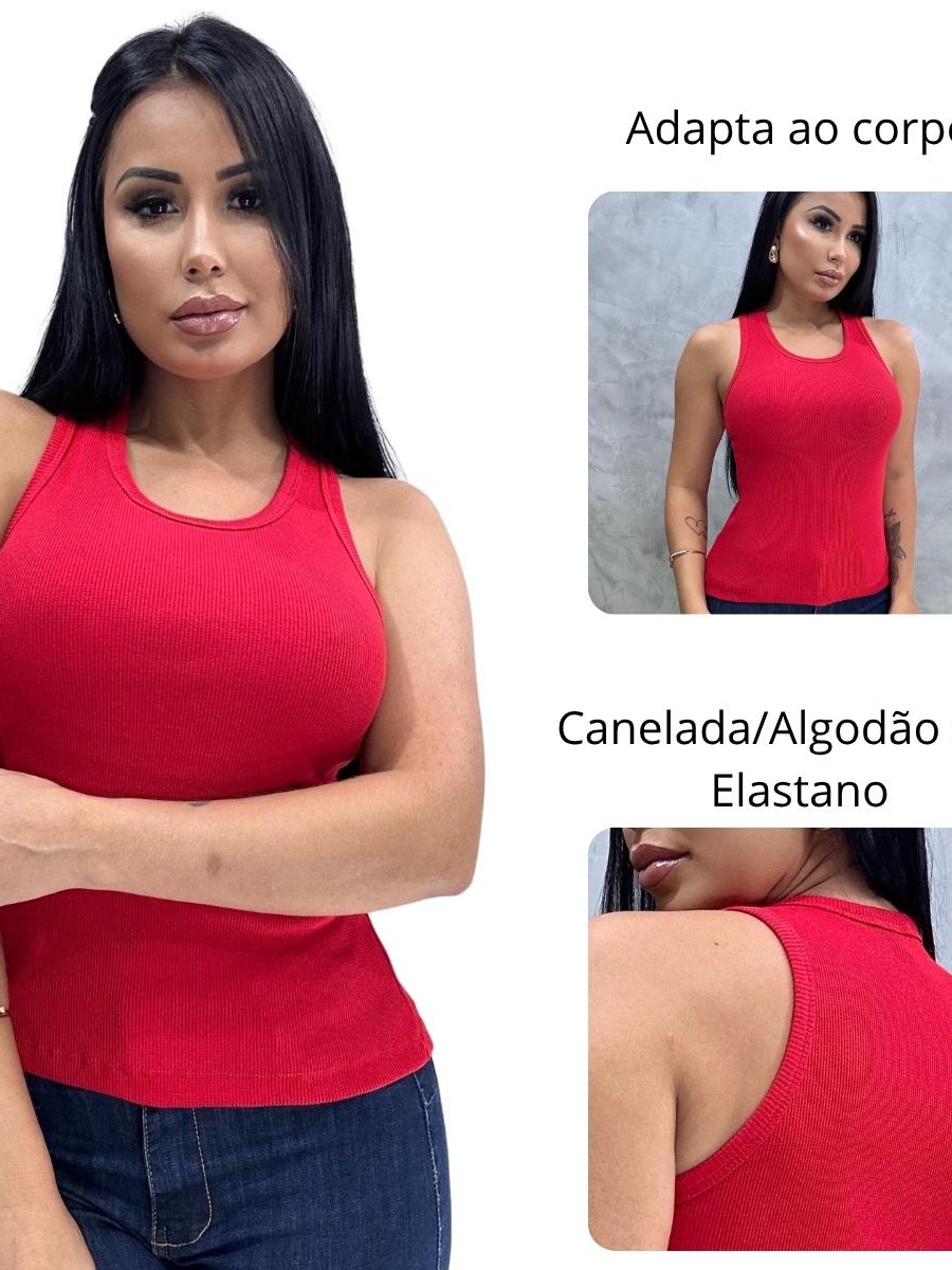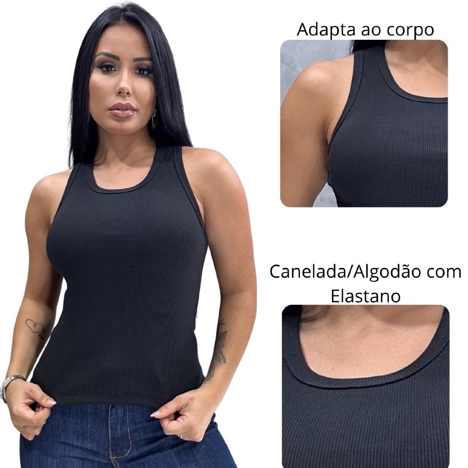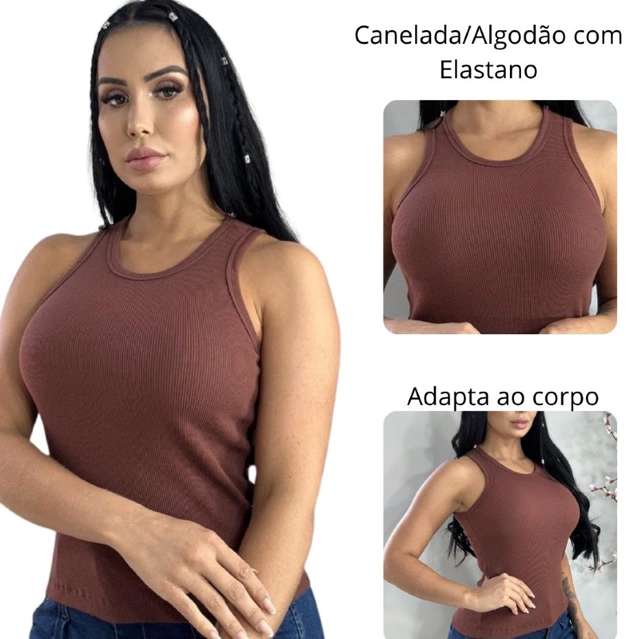 Regata Feminina Canelada Algodão com Elastano Ribana Blusinha Básica Estilosa