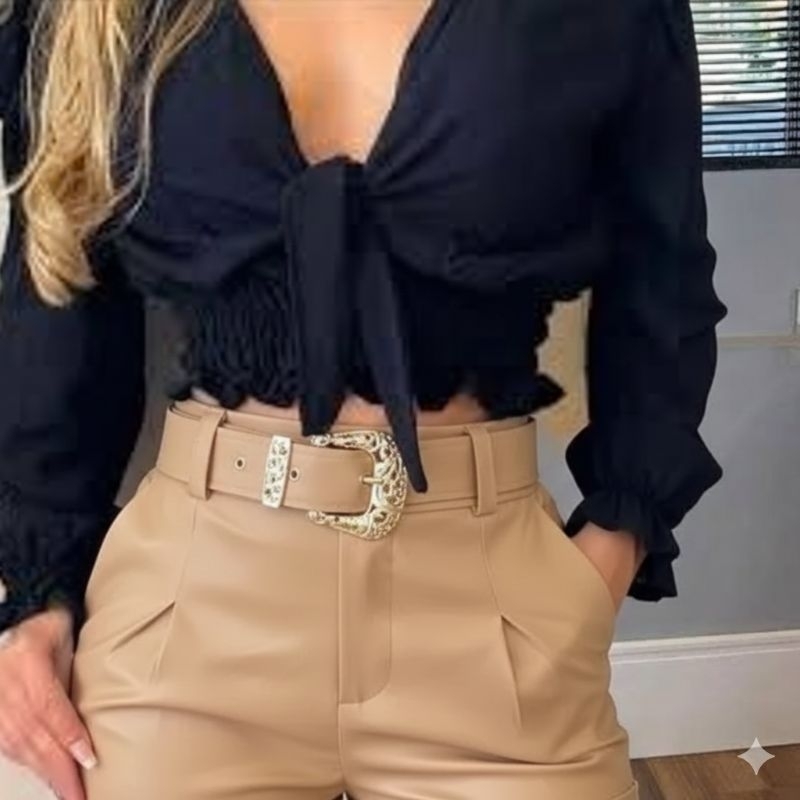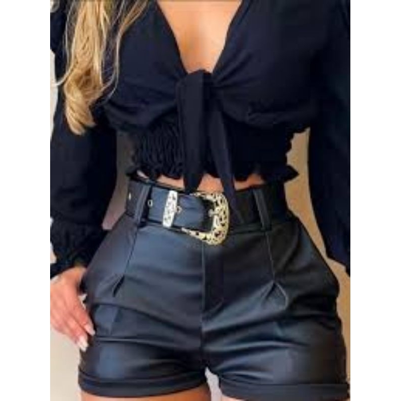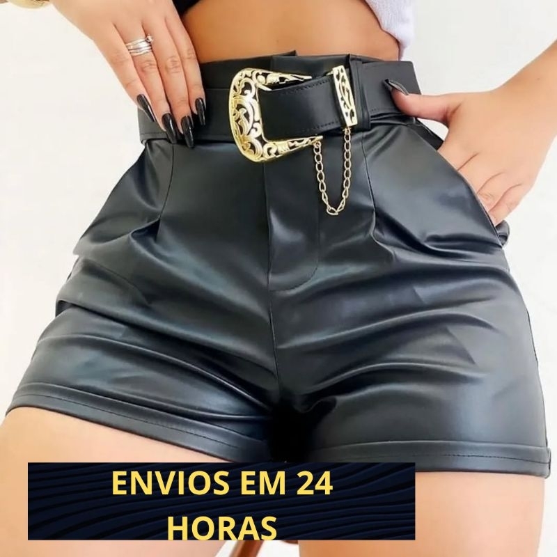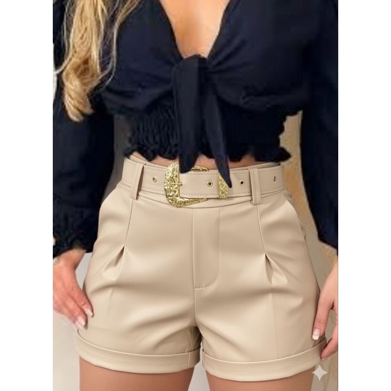 Shorts Couro Fake com cinto