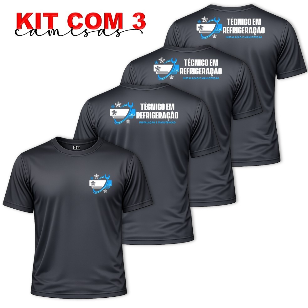 Kit com 3 Camisas Camiseta Uniforme Masculina TÉCNICO EM REFRIGERAÇÃO Dry Fit Profissão Envio Rápido