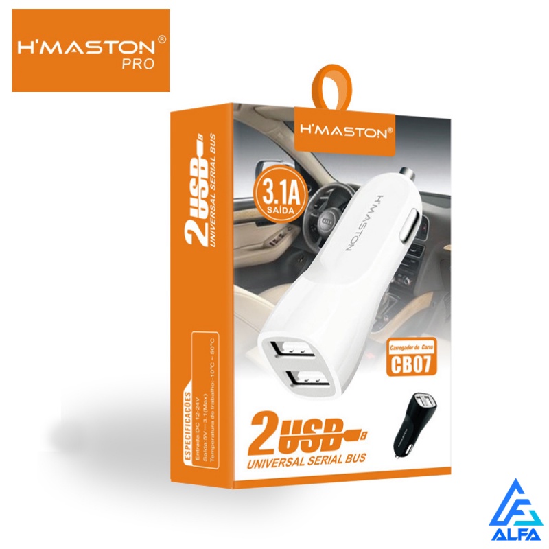 Carregador 3.1A para Celular Veicular Carro Fonte 2 entradas USB Turbo Rápido Hmaston