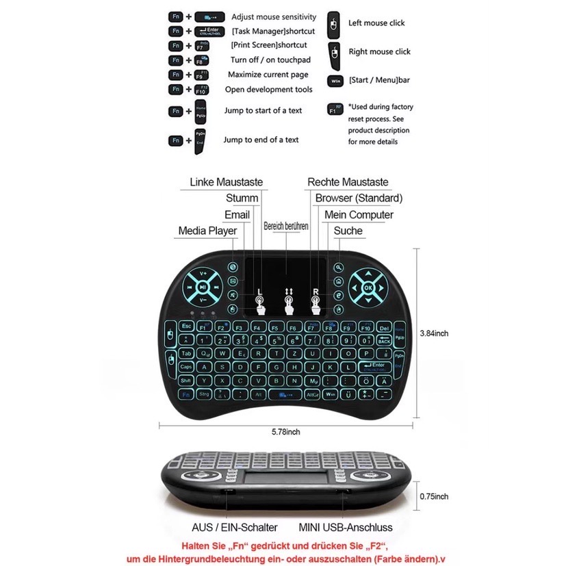 Mini Teclado Controle Usb Touchpad Smart Tv Pc Ps3- Iluminado