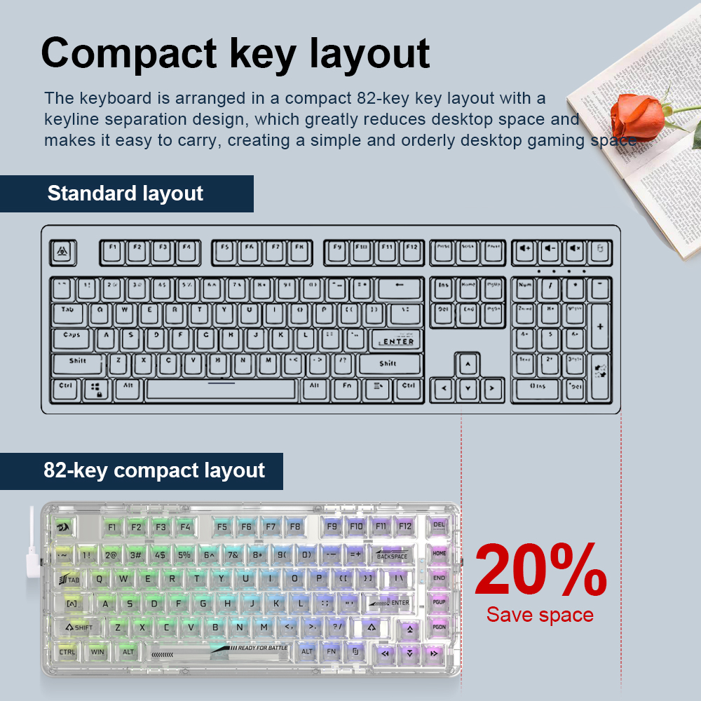REDRAGON KS82-B USB RGB Jogo Mecânico 78 % Teclado Com Fio 82 Teclas Layout Hot-Swap Compact Gamer Para Computador PC Portátil