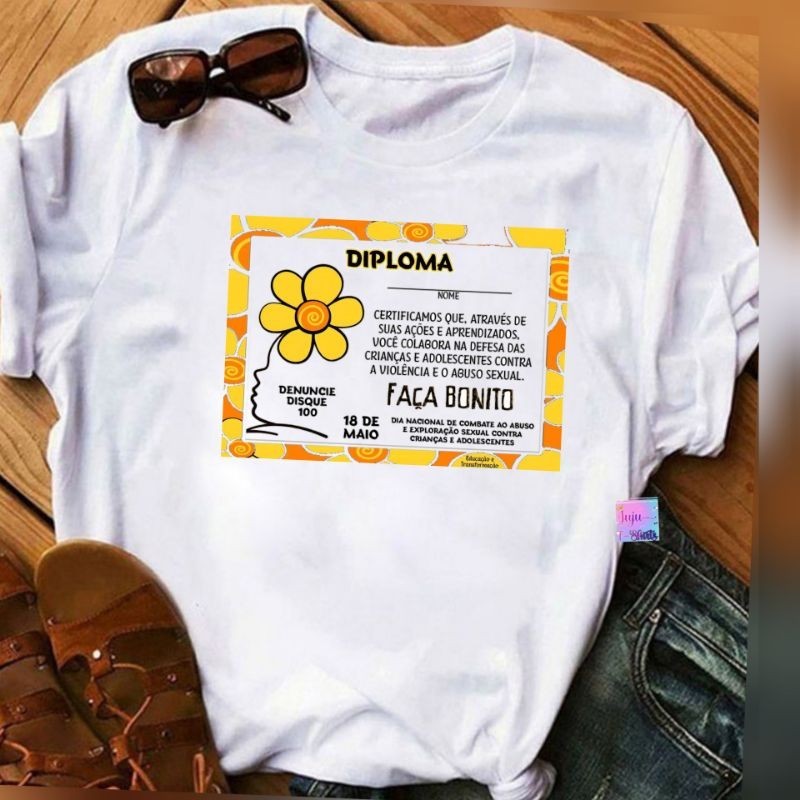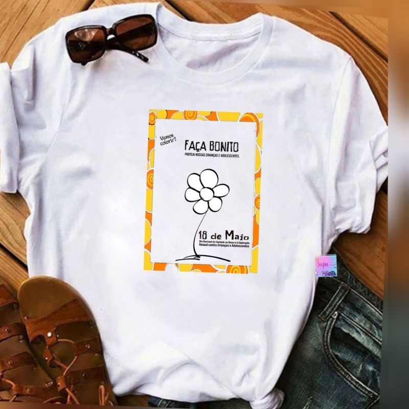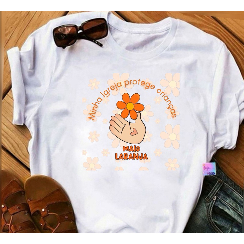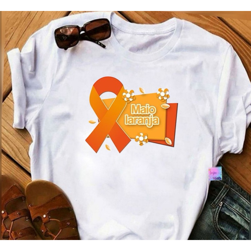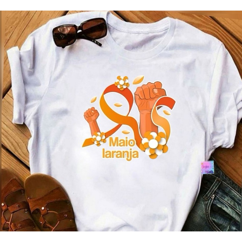 T-SHIRT Baby look Feminina/Campanha Maio Laranja/18 de Maio dia Nacional de Combate ao abuso e exploração sexual .