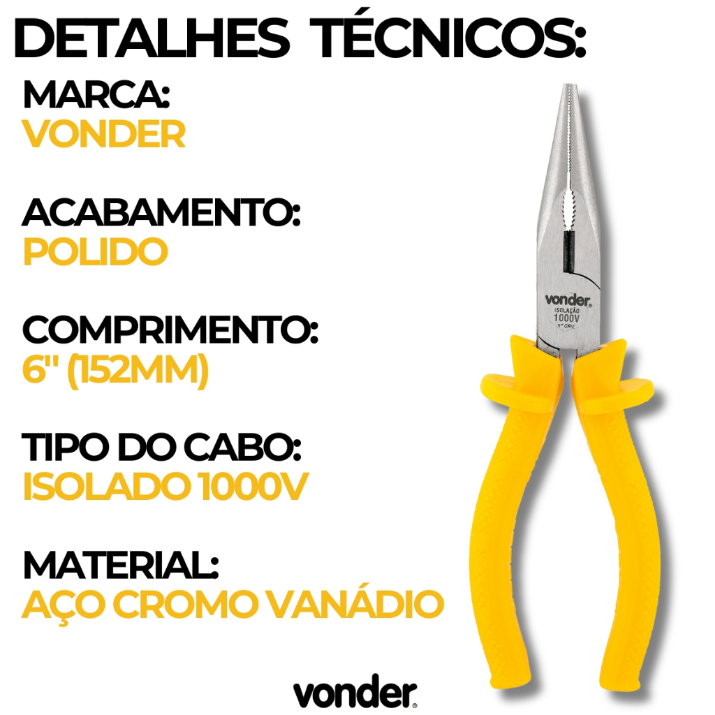 Alicate Bico Eletricista Fios Arames 6 Isolado 1000v Vonder
