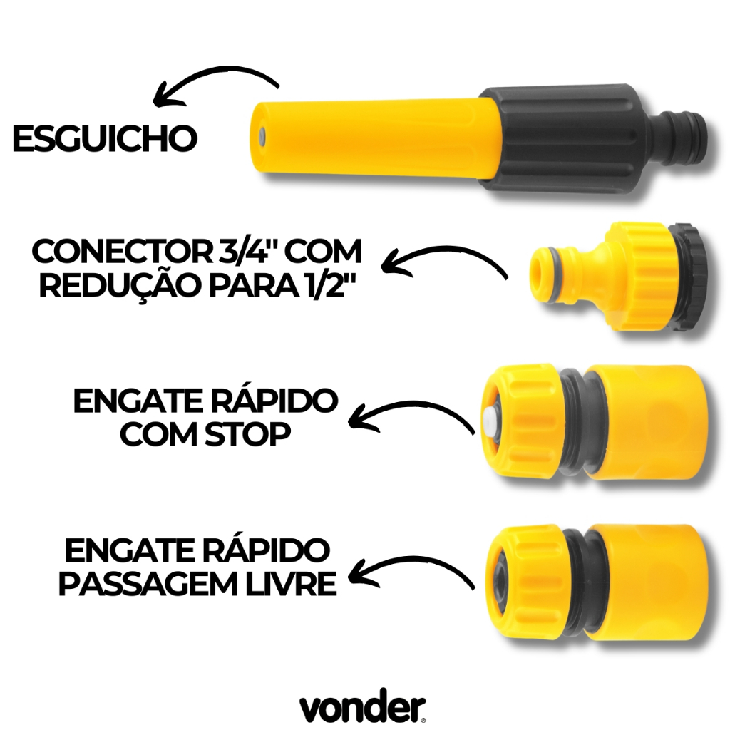 Kit Esguicho Engate Rápido para Mangueira 4 Peças Vonder