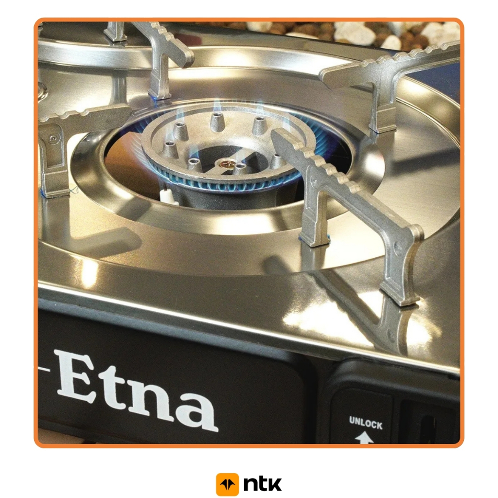 Fogareiro Horizontal 2 Bocas ETNA Aço Inoxidável 63cm Preto Cartucho/Botijão Controlador Chamas NTK