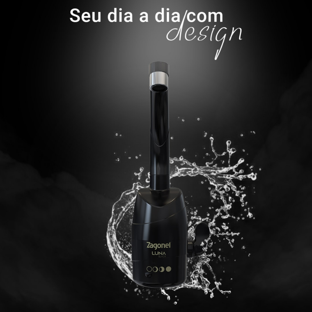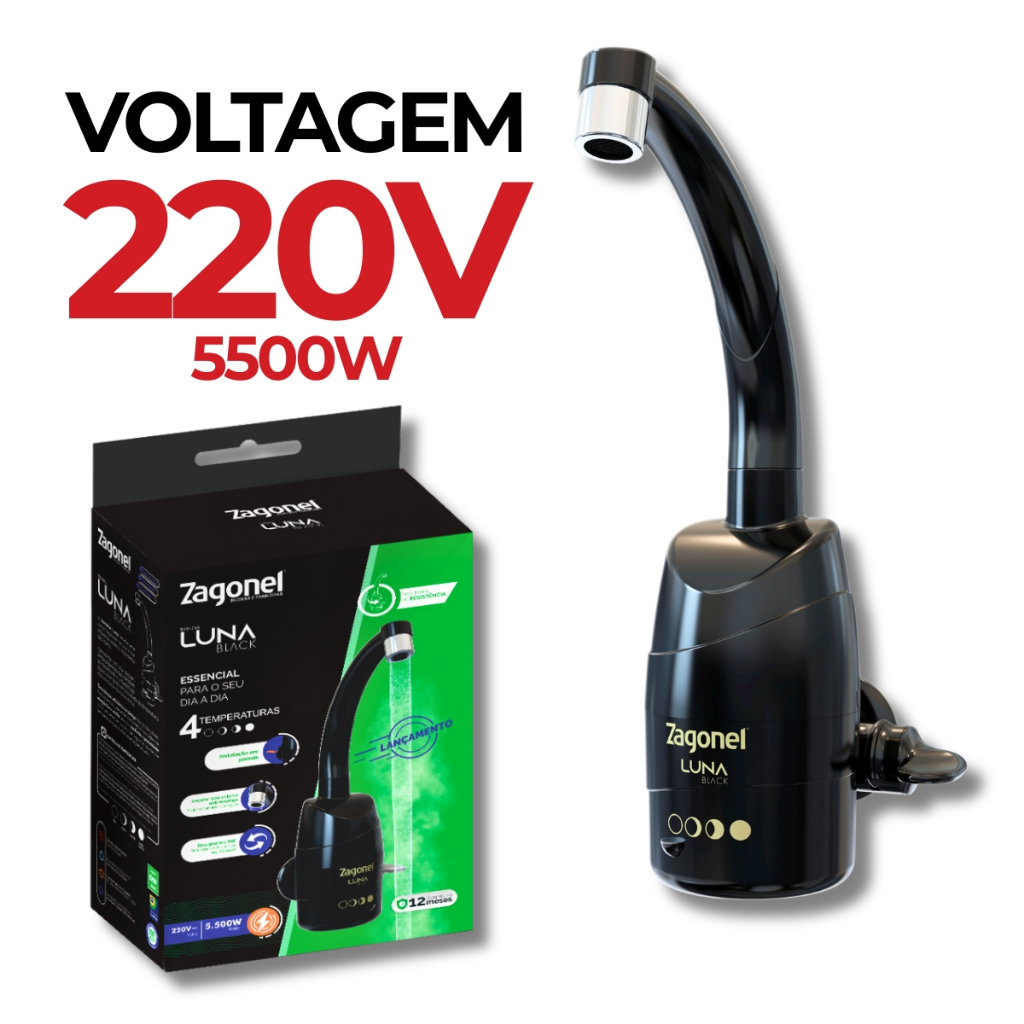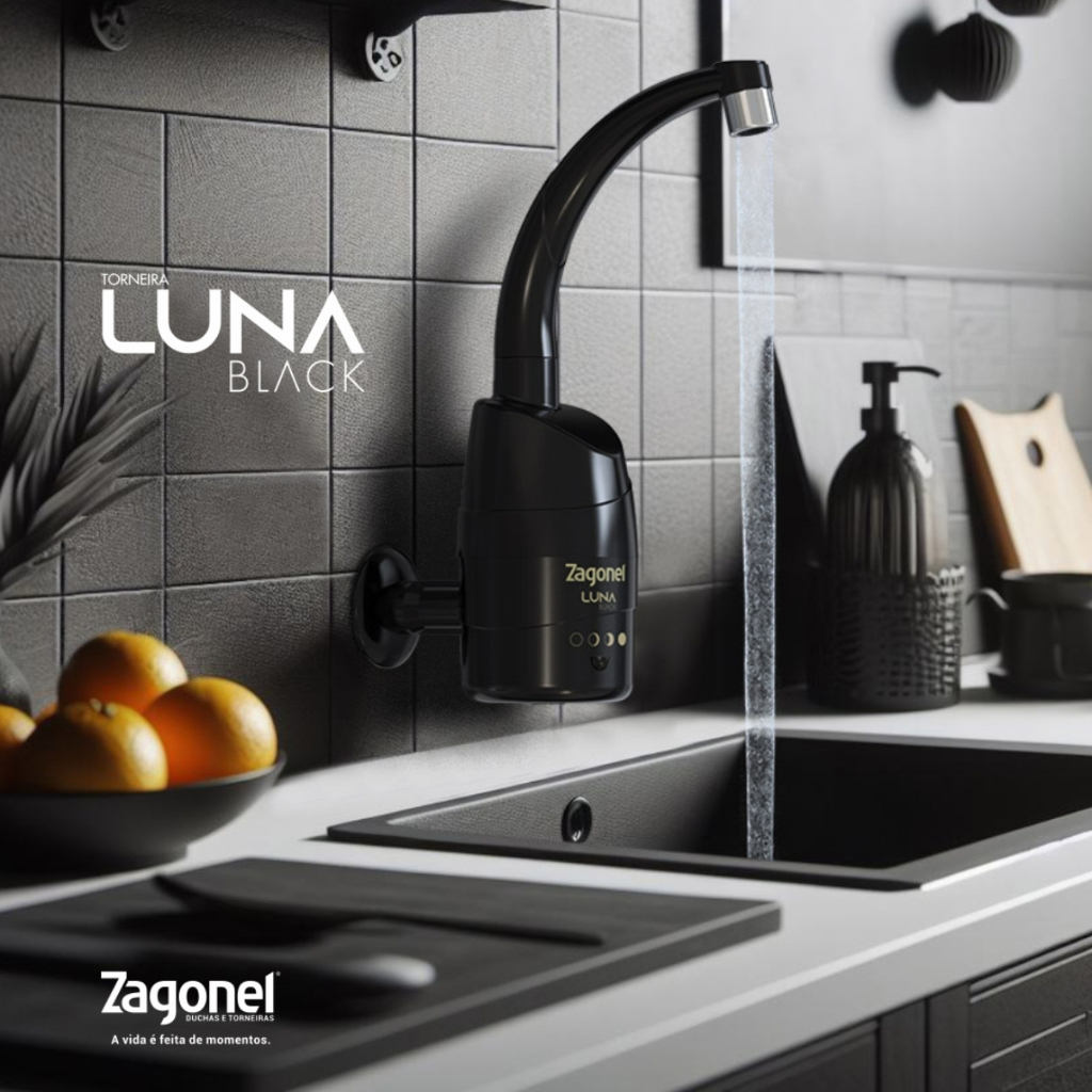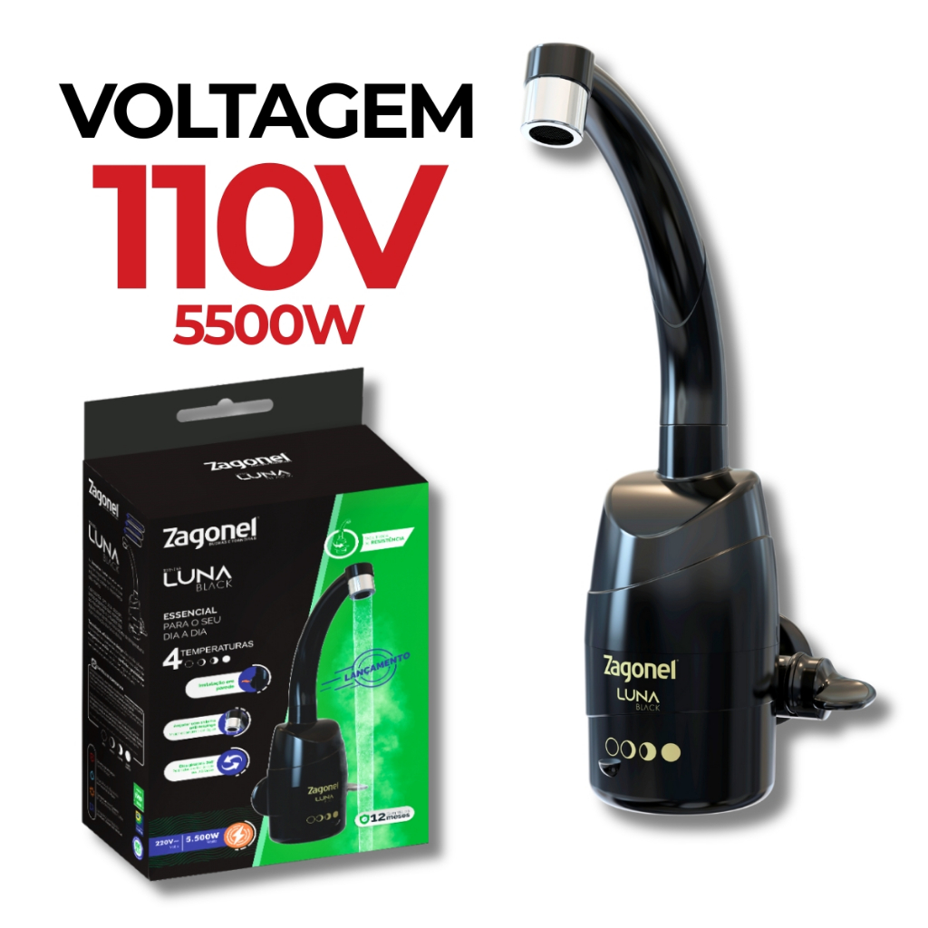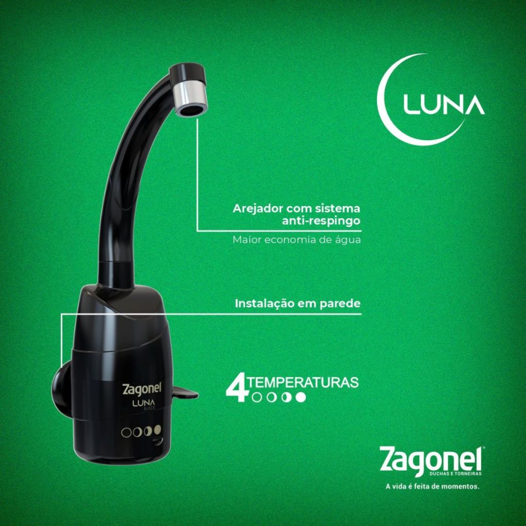 Torneira Elétrica Luna 4T Preta de Parede Zagonel 220V e 110v