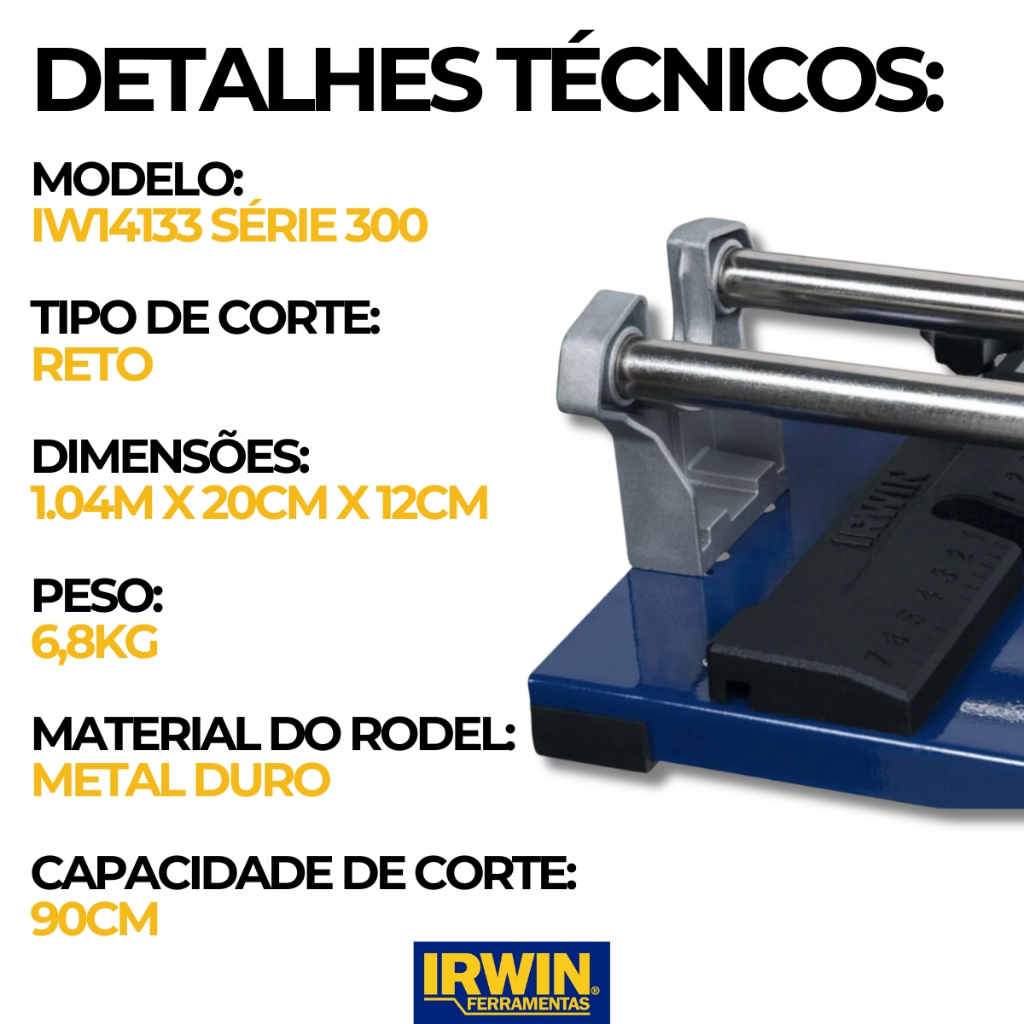 Cortador de Piso 90cm Manual IRWIN Profissional Porcelanato Cerâmica