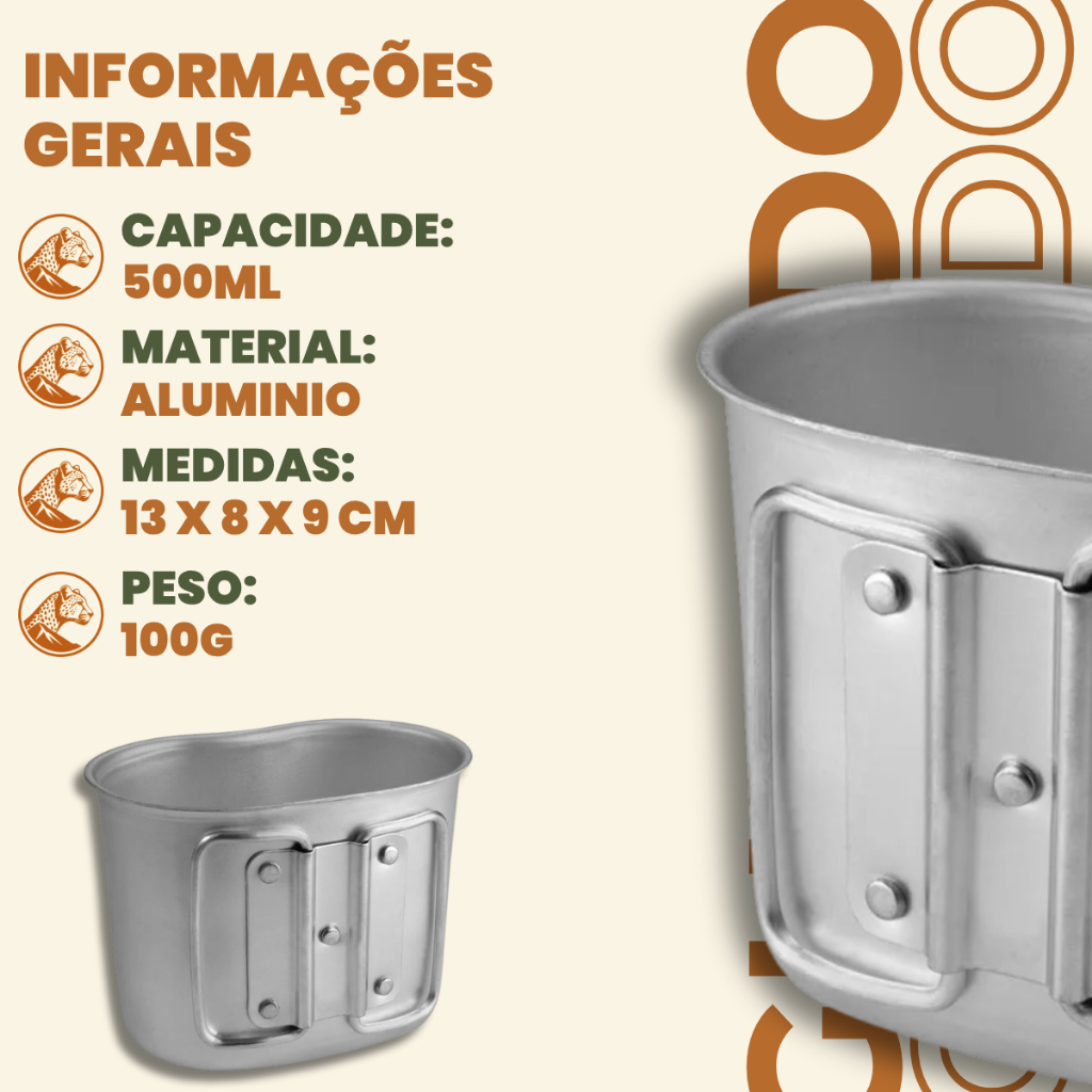Caneca Para Cantil 530ml Com Alças Retráteis Em Alumínio