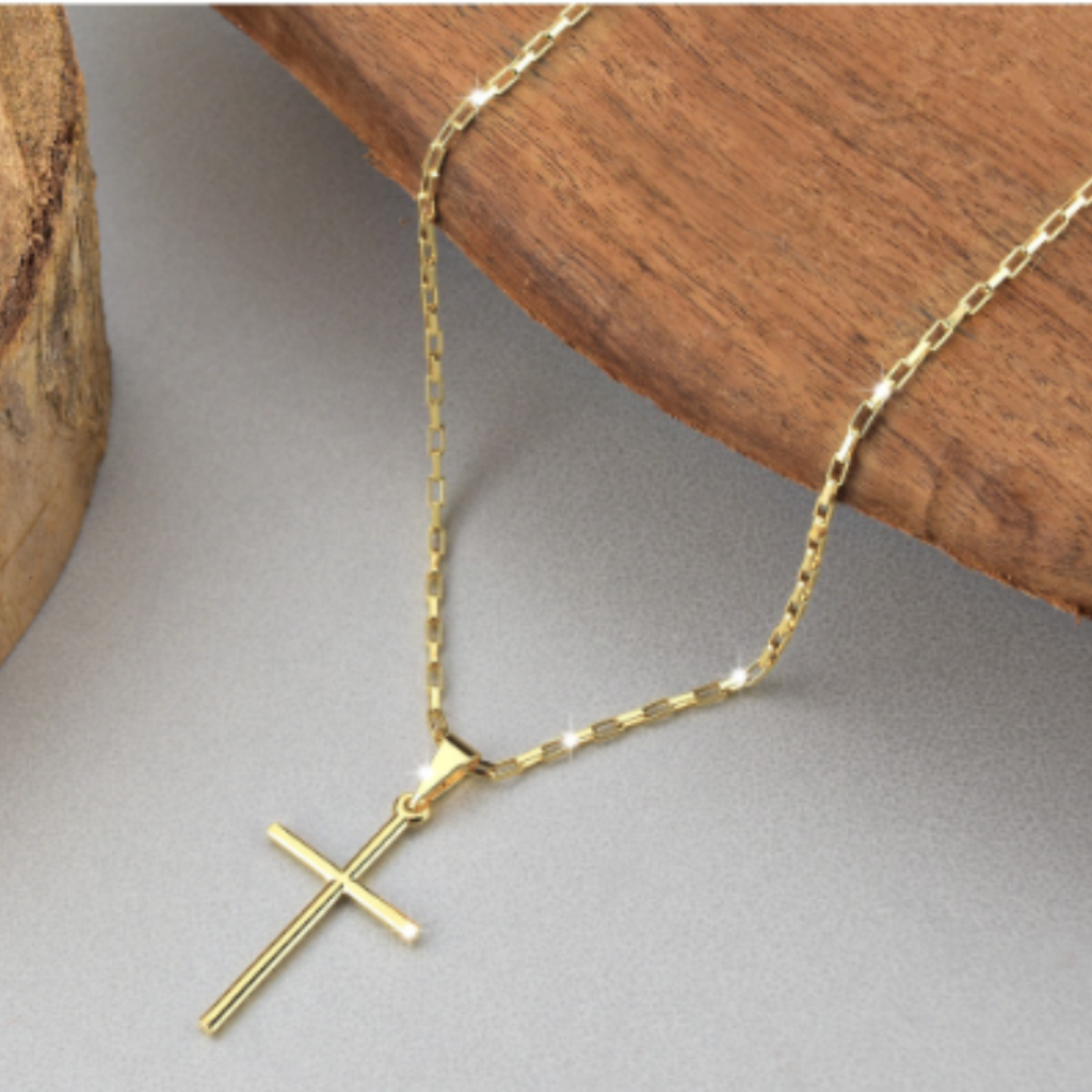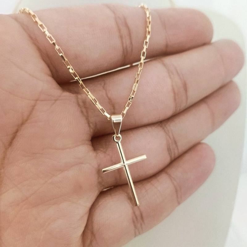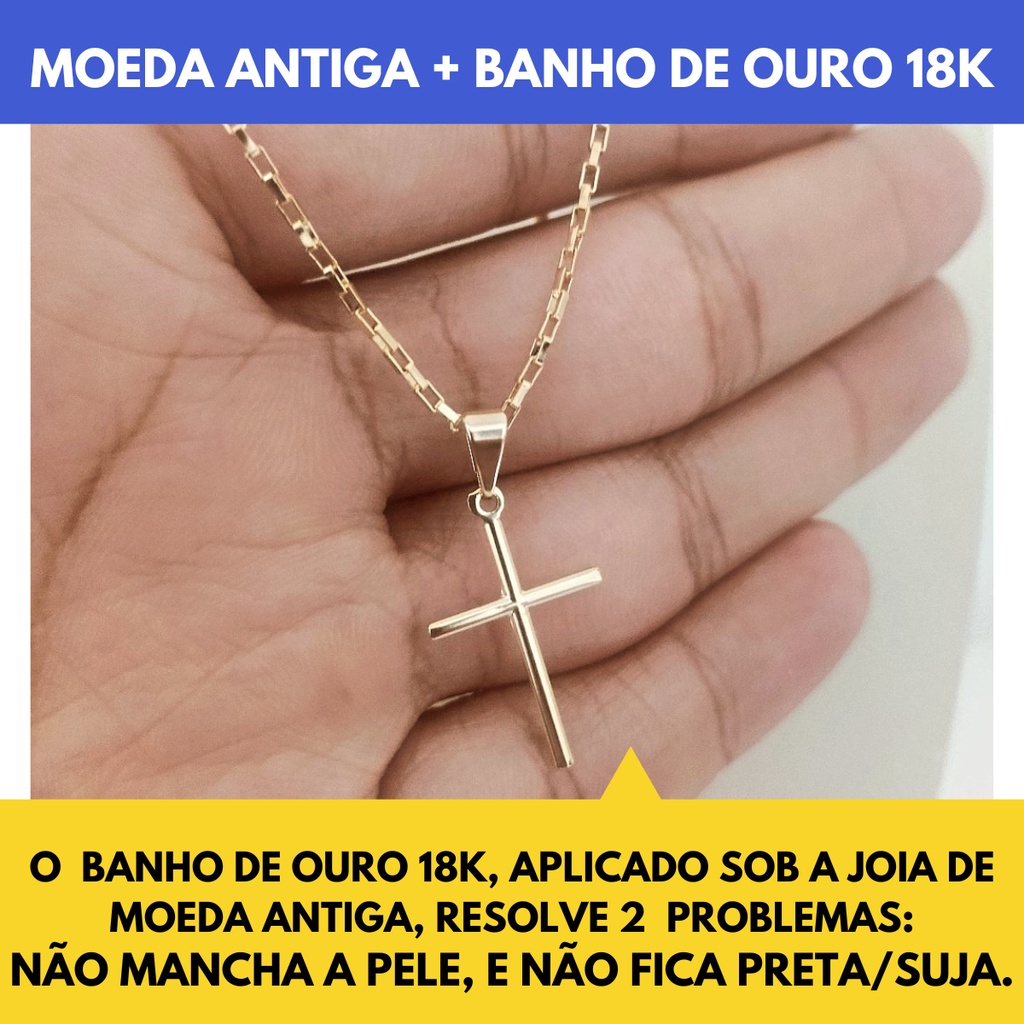 Corrente moeda antiga, 50 CM, Cordão moeda antiga, Colar com pingente Cruz Palito, com Banho De Ouro