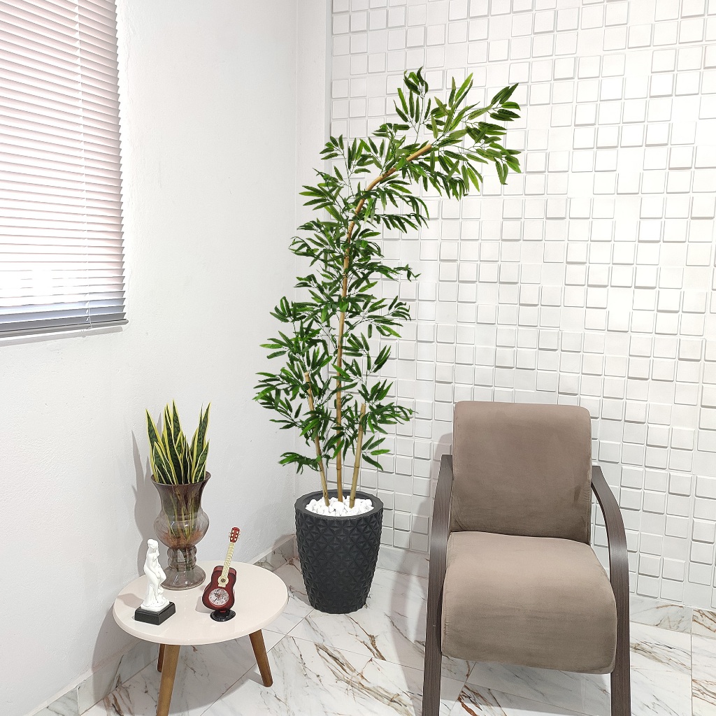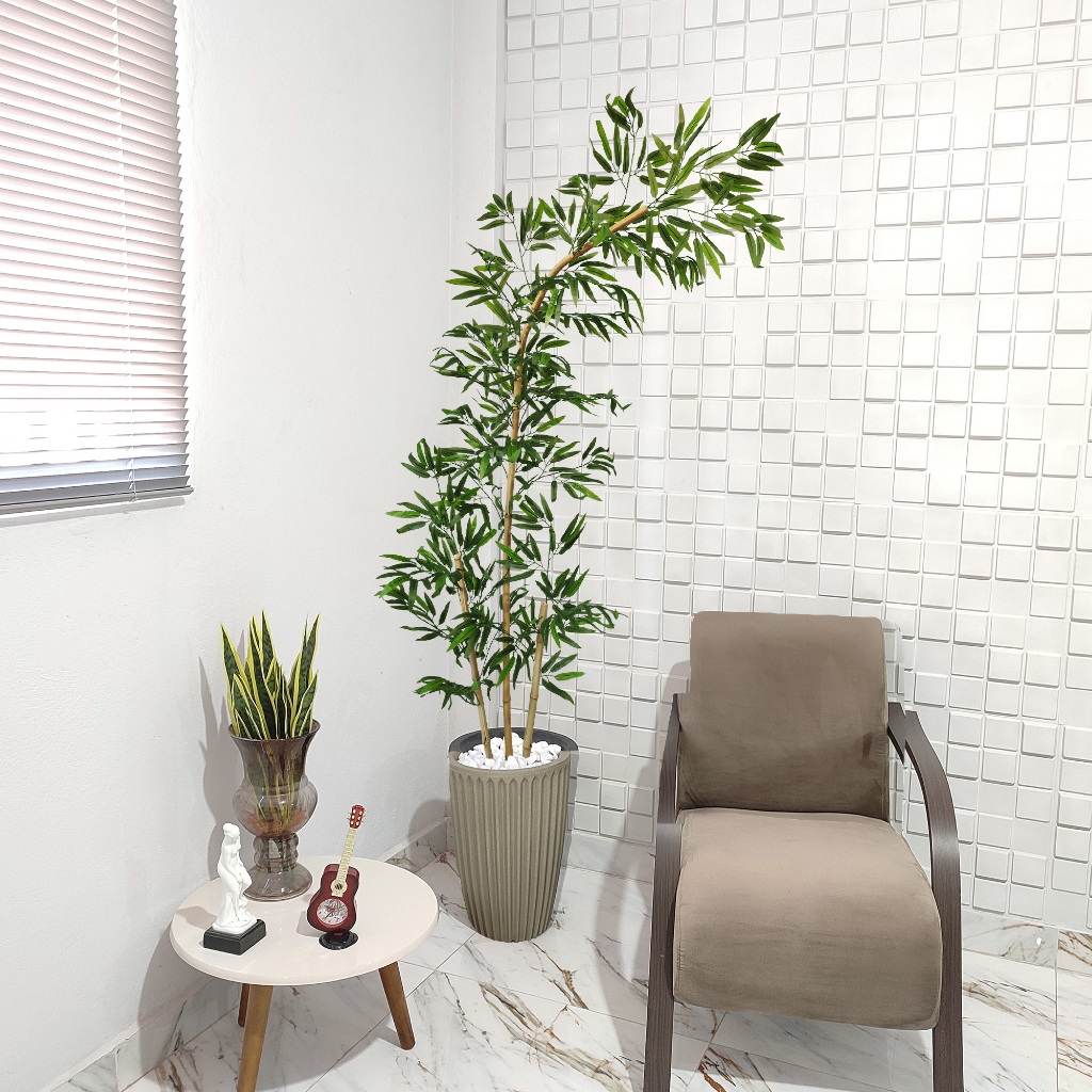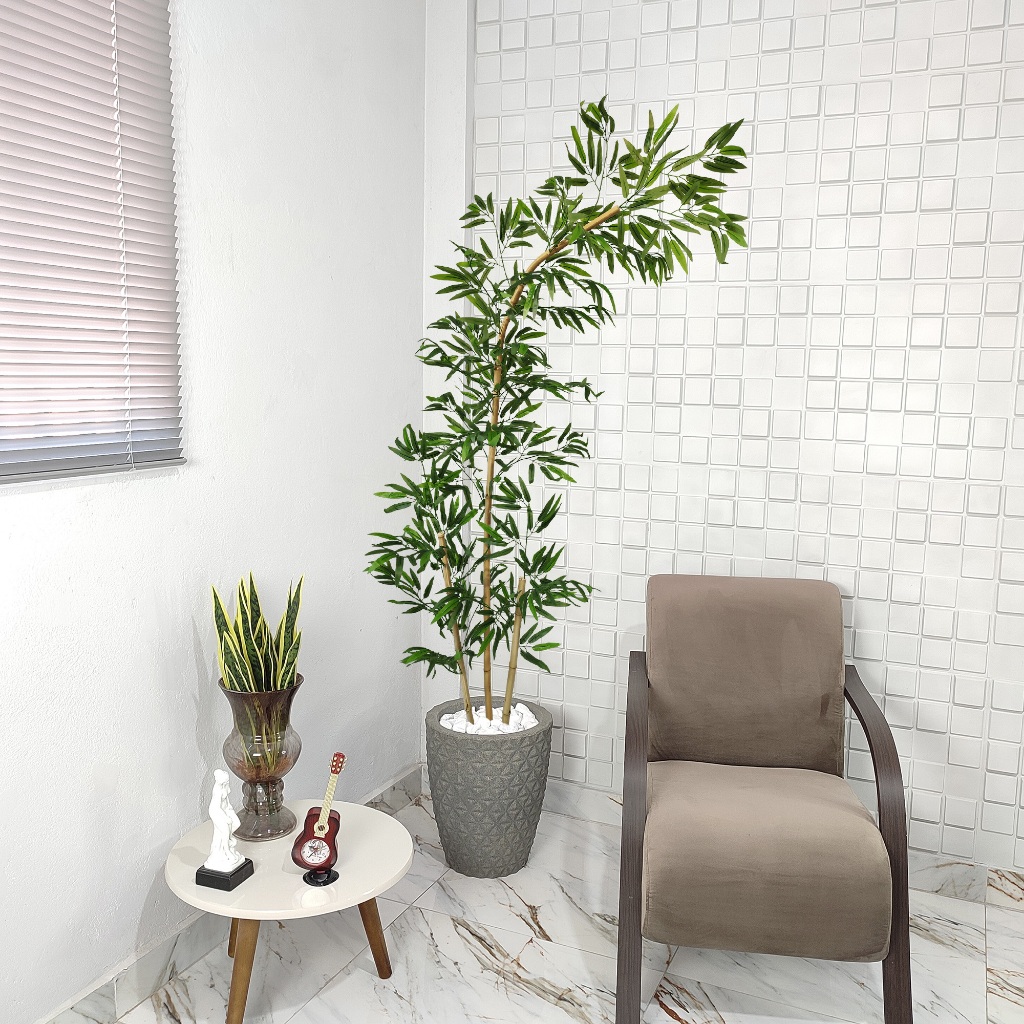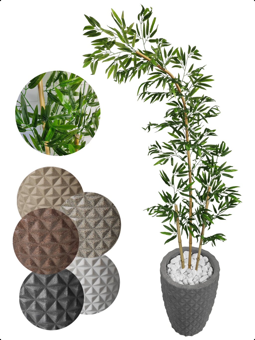 Bambu Artificial Curvo Mosso Torto Curvado Grande Vaso Pedra