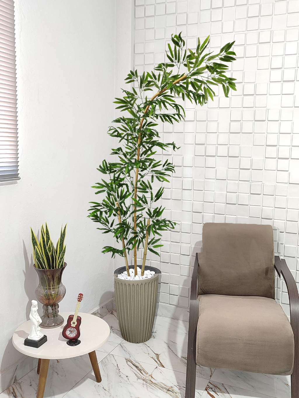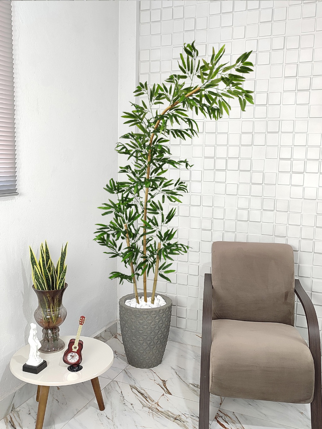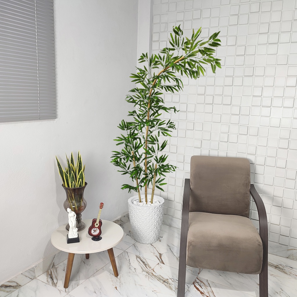 Bambu Artificial Curvo Mosso Torto Curvado Grande Vaso Pedra