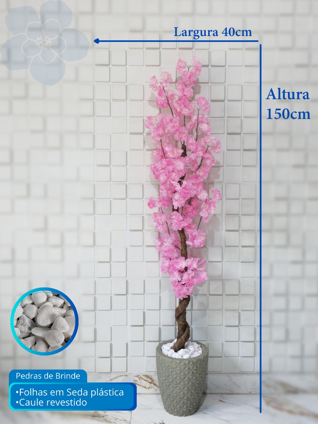 Cerejeira Artificial Japonesa Rosa 150cm Vaso Decorativo