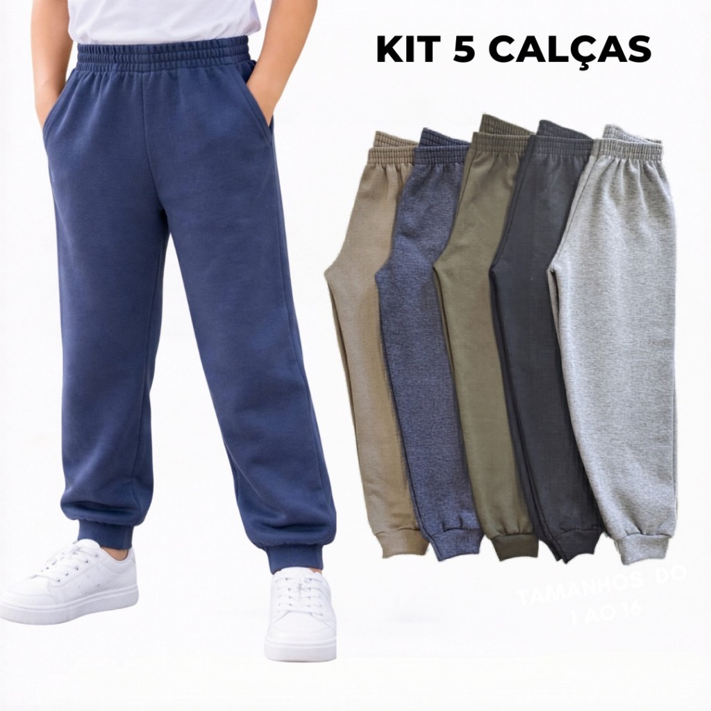 Kit 5 Calças Moletom Peluciado Menino Infantil Juvenil 1 ao 16 Cores Sortidas