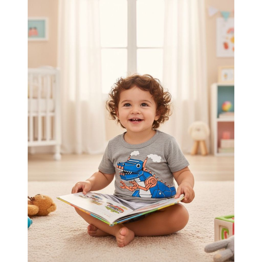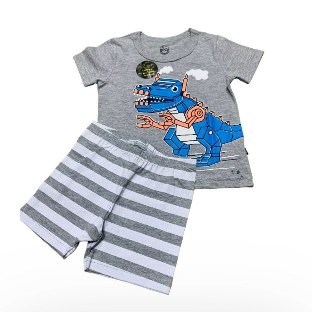Pijama infantil dinossauro com estampa que reflete no escuro.