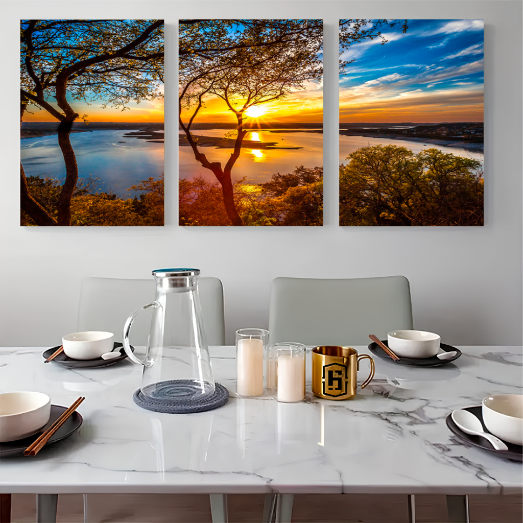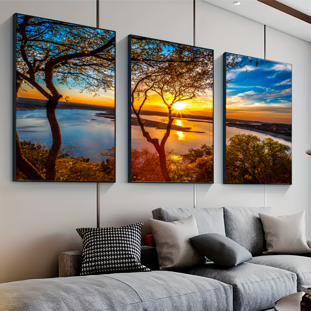 Quadro painel moderno árvore paisagem por do sol mar luxo