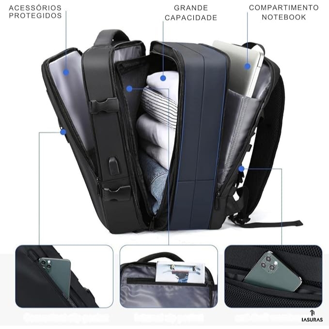 Mochila Travel para Viagem Reforçada Premium Grande Impermeável 45l Mala de Bordo para Notebook